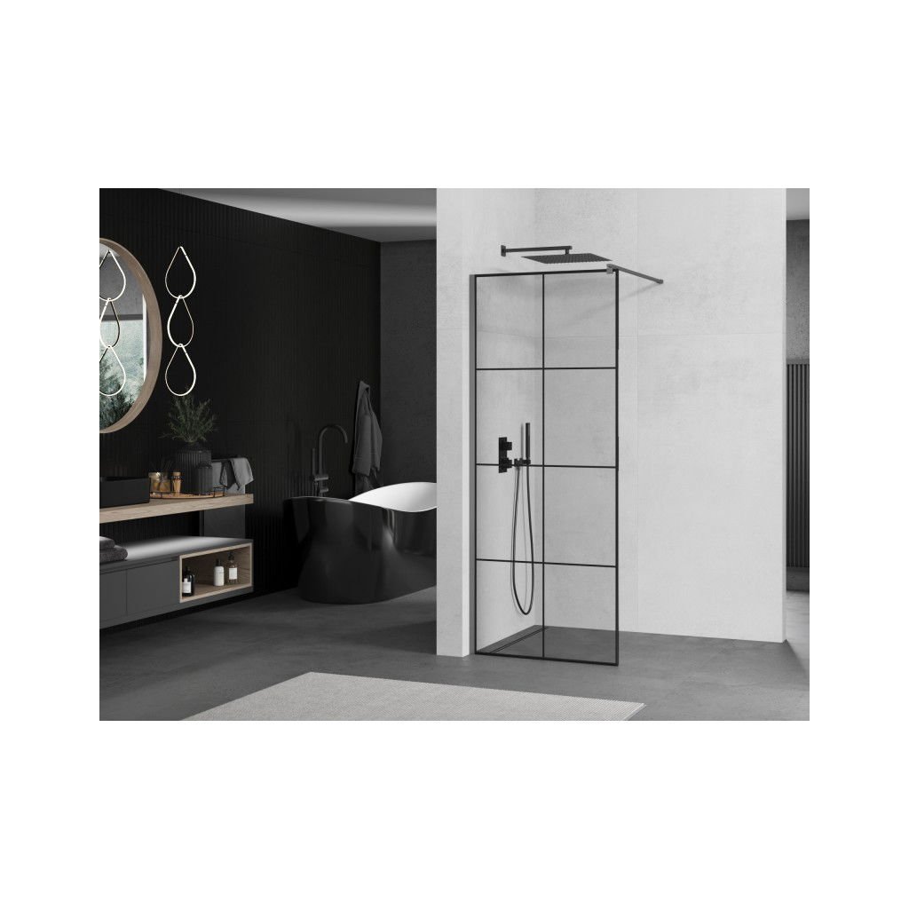 Mexen Kioto, paravan de duș walk-in 90 x 200 cm, sticlă transparentă de 8 mm model negru, profil grafit, 800-090-101-95-77