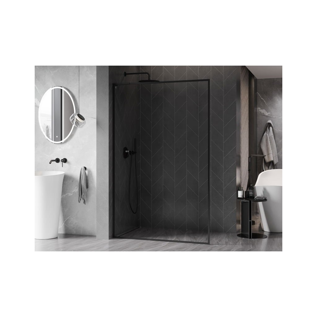 Mexen Kioto-F L, paravan de dus cu cadru 85 x 202 cm, sticla transparenta 8 mm, profil negru, 800-085-174-70-00