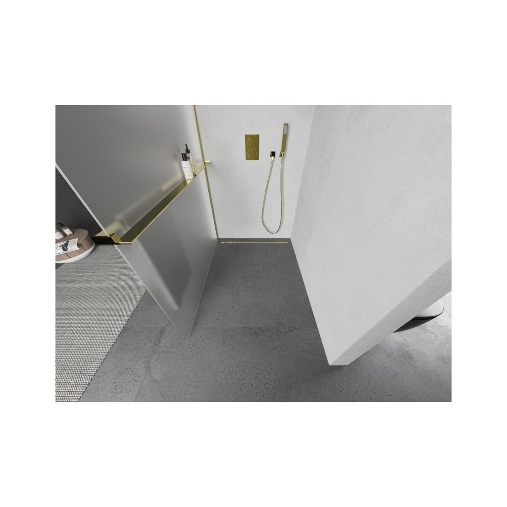 Mexen Kioto+, paravan de dus cu polita si suport pentru prosoape 100 x 200 cm, sticla mat 8 mm, profil auriu, 800-100-121-50-30