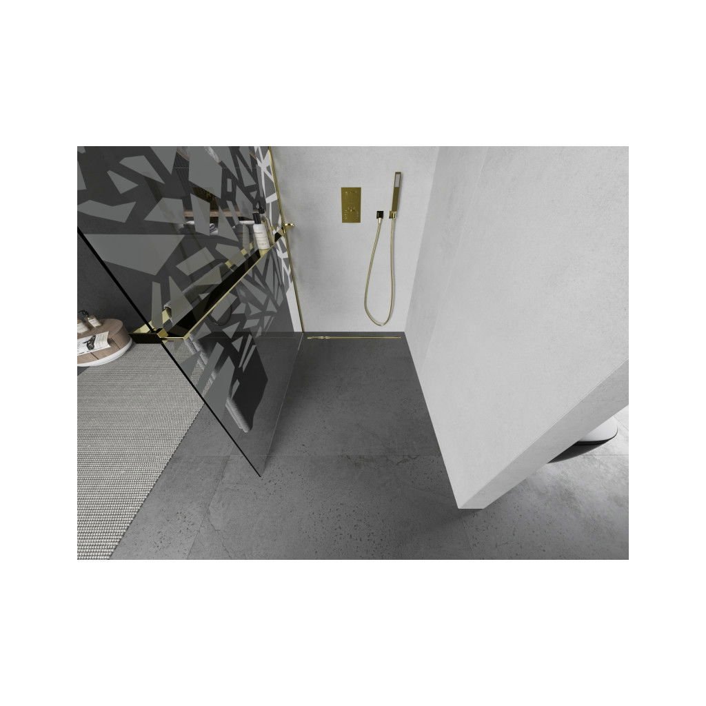 Mexen Kioto+, paravan de dus cu polita si suport pentru prosoape 100 x 200 cm, sticla transparenta 8 mm model alb, profil auriu 800-100-121-50-85