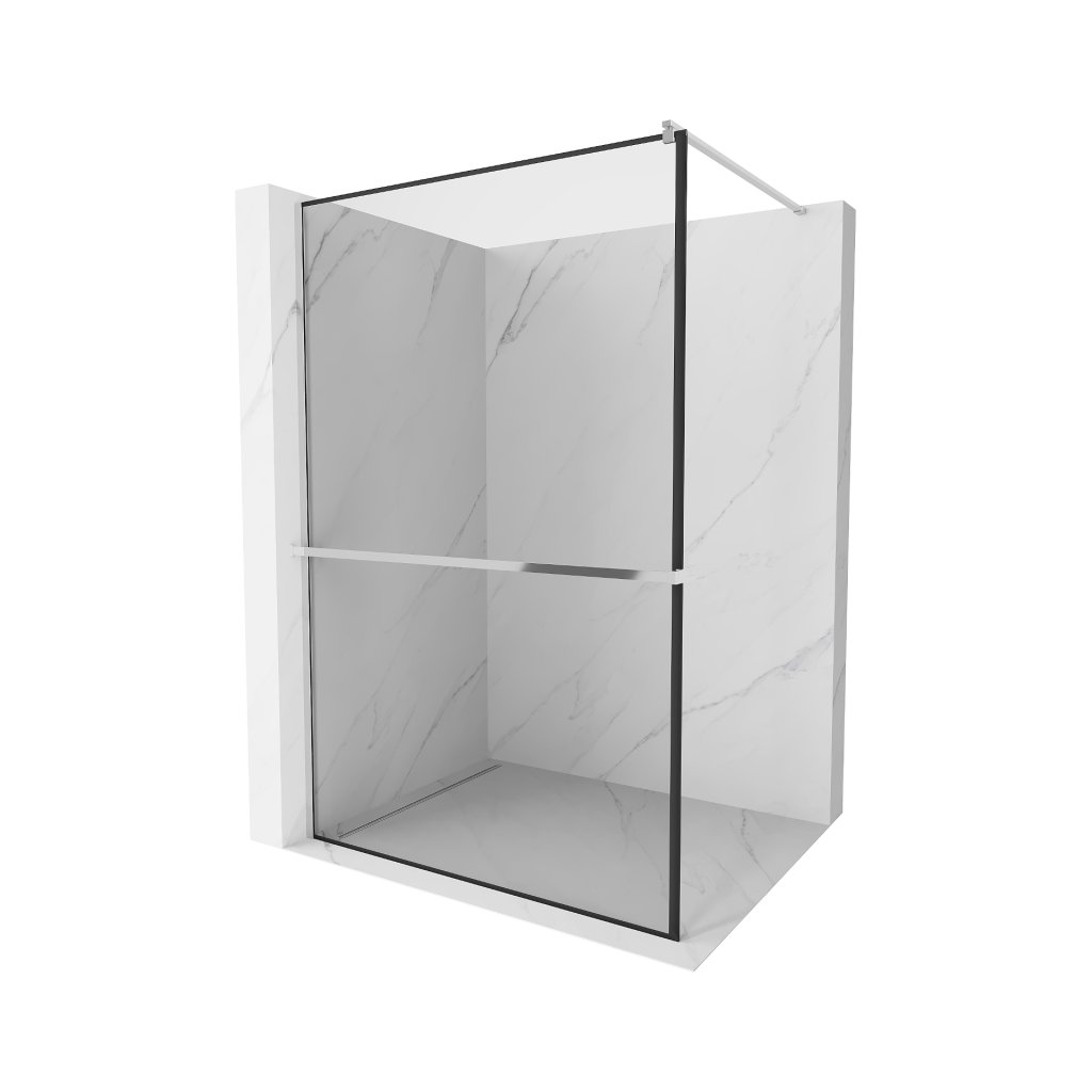 Mexen Kioto+, paravan de duș cu poliță și suport pentru prosoape 110 x 200 cm, cadru negru model sticlă transparentă de 8 mm, profil cromat, 800-110-121-01-70