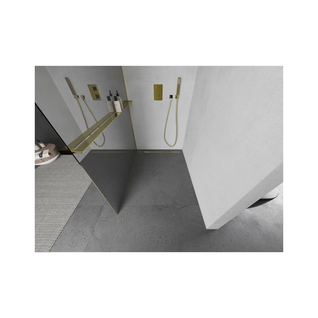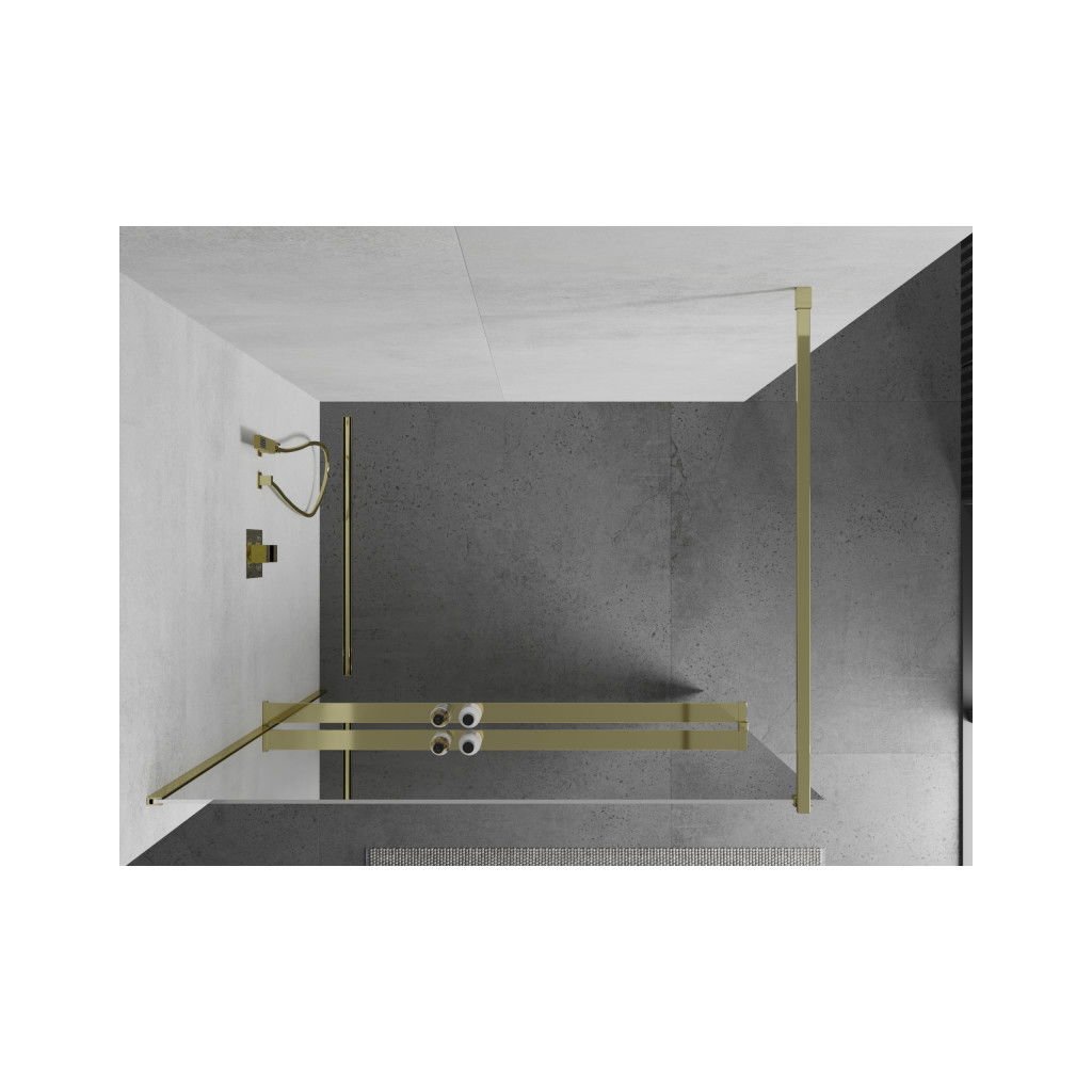 Mexen Kioto+, paravan de dus cu polita si suport pentru prosoape 120 x 200 cm, model oglinda sticla 8 mm, profil auriu, 800-120-121-50-50