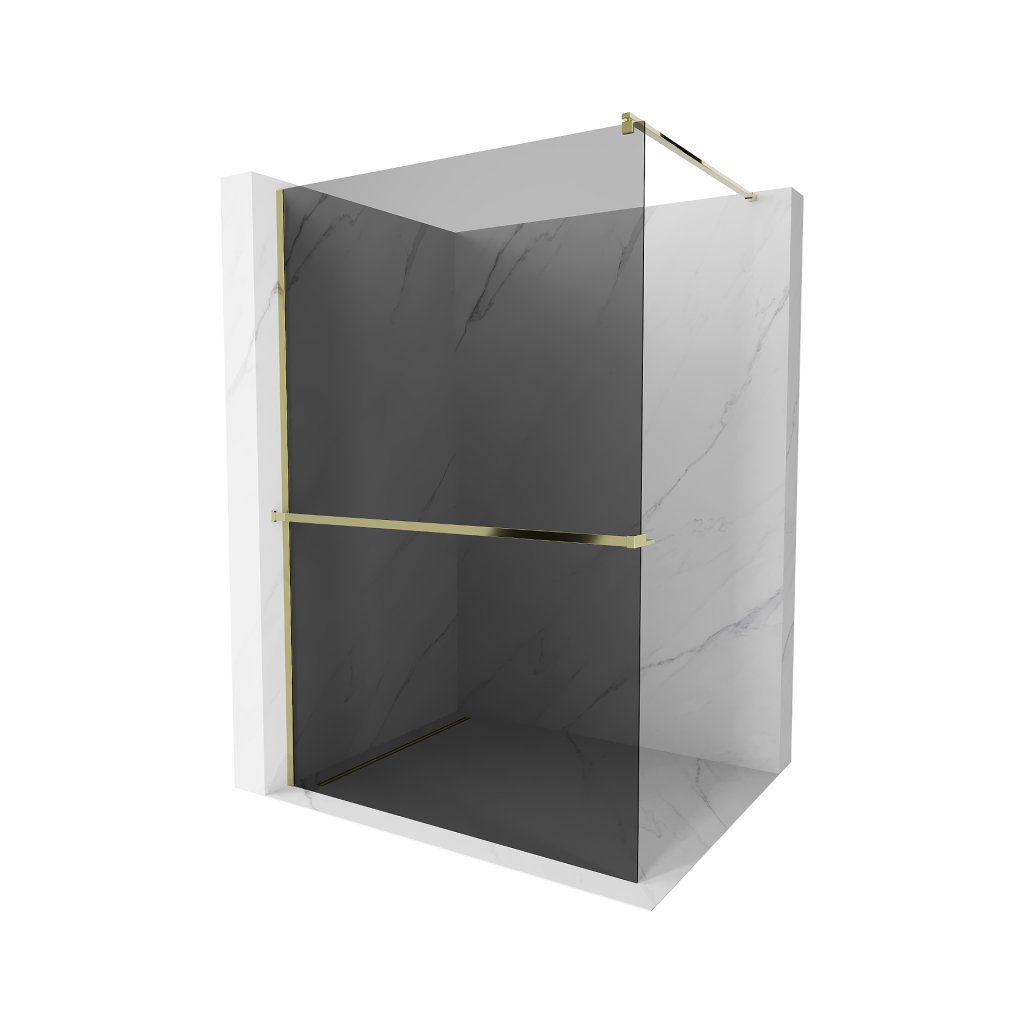 Mexen Kioto+, paravan de dus cu polita si suport pentru prosoape 120 x 200 cm, sticla gri 8mm, profil auriu, 800-120-121-50-40