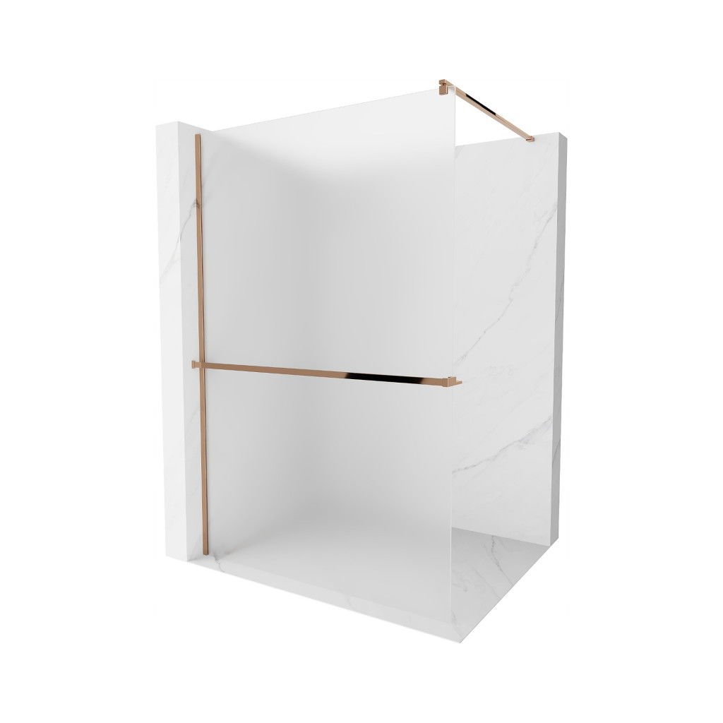 Mexen Kioto+, paravan de duș cu poliță și suport pentru prosoape 120 x 200 cm, sticlă mată 8 mm, profil auriu roz, 800-120-121-60-30