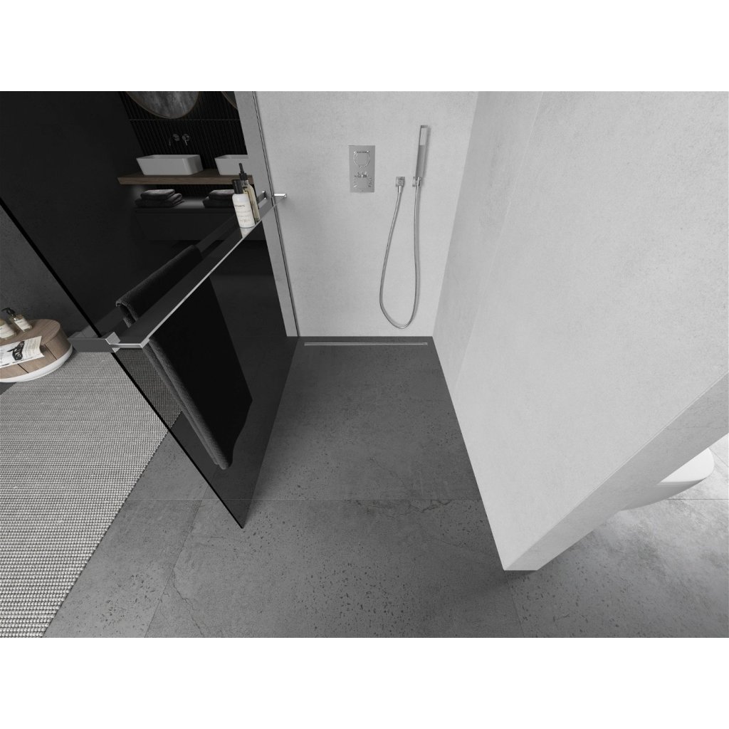 Mexen Kioto+, paravan de dus cu polita si suport pentru prosoape 140 x 200 cm, sticla gri 8mm, profil cromat, 800-140-121-01-40