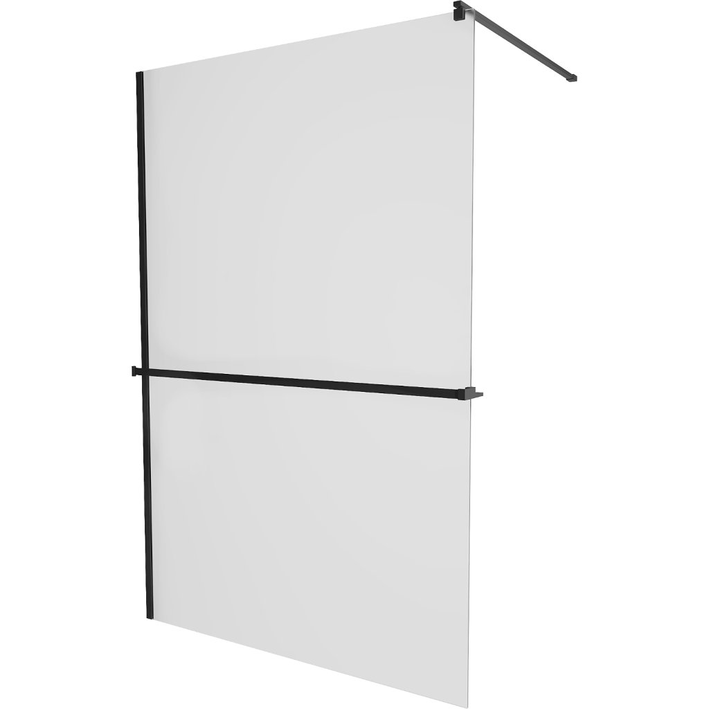 Mexen Kioto+, paravan de duș cu poliță și suport pentru prosoape 140 x 200 cm, sticlă mată 8 mm, profil negru, 800-140-121-70-30