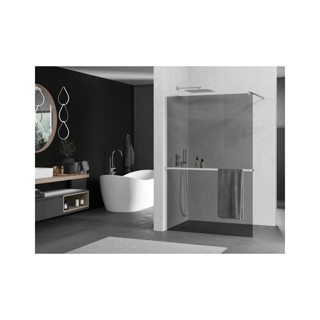 Mexen Kioto+, paravan de dus cu polita si suport pentru prosoape 70 x 200 cm, sticla gri 8mm, profil cromat, 800-070-121-01-40