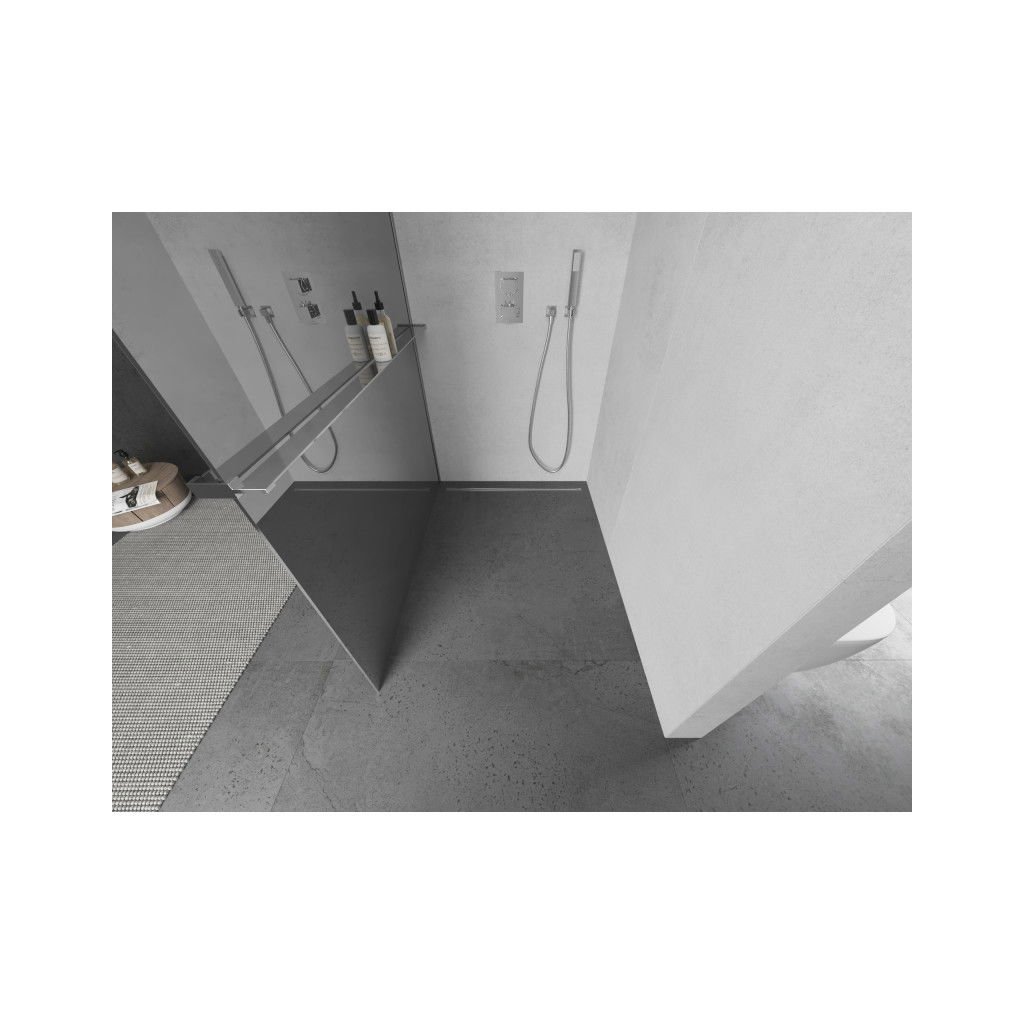 Perdeaua de duș din colecția Walk-In este o soluție universală și populară pentru fiecare baie. Ecranul este fără uși și include o tijă care poate fi folosită pentru a atârna o perdea. Ecranul din seria Kioto este realizat din sticlă securizată securizată de 8 mm cu o înălțime de 200 cm. Montarea este universala pe cadita de dus sau gresie, dreapta sau stanga. Cu ajutorul unui conector în T (nu este inclus în pachet), este posibil să conectați distanțiere stabilizatoare și să creați un colț de duș deschis de orice dimensiune (parele de duș Kioto sunt disponibile în lungimi de 30-160 cm). În acest caz, vă recomandăm să lăsați cel puțin 50 cm ca lățime minimă de intrare. Paravanul de duș oferit include un raft metalic de designer pentru agățarea prosoapelor la exterior și plasarea programului de duș în interior pentru un duș confortabil.