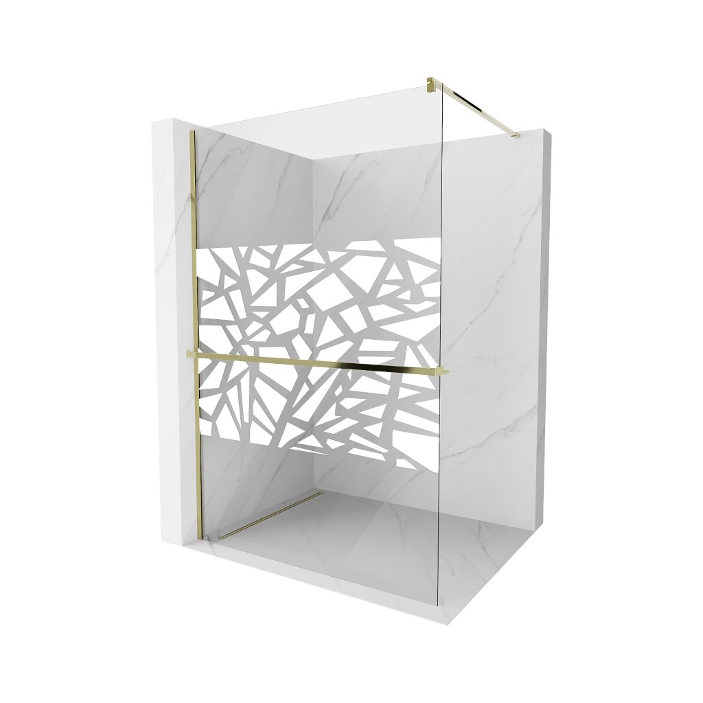 Mexen Kioto+, paravan de dus cu polita si suport pentru prosoape 90 x 200 cm, sticla transparenta 8 mm model alb, profil auriu 800-090-121-50-85