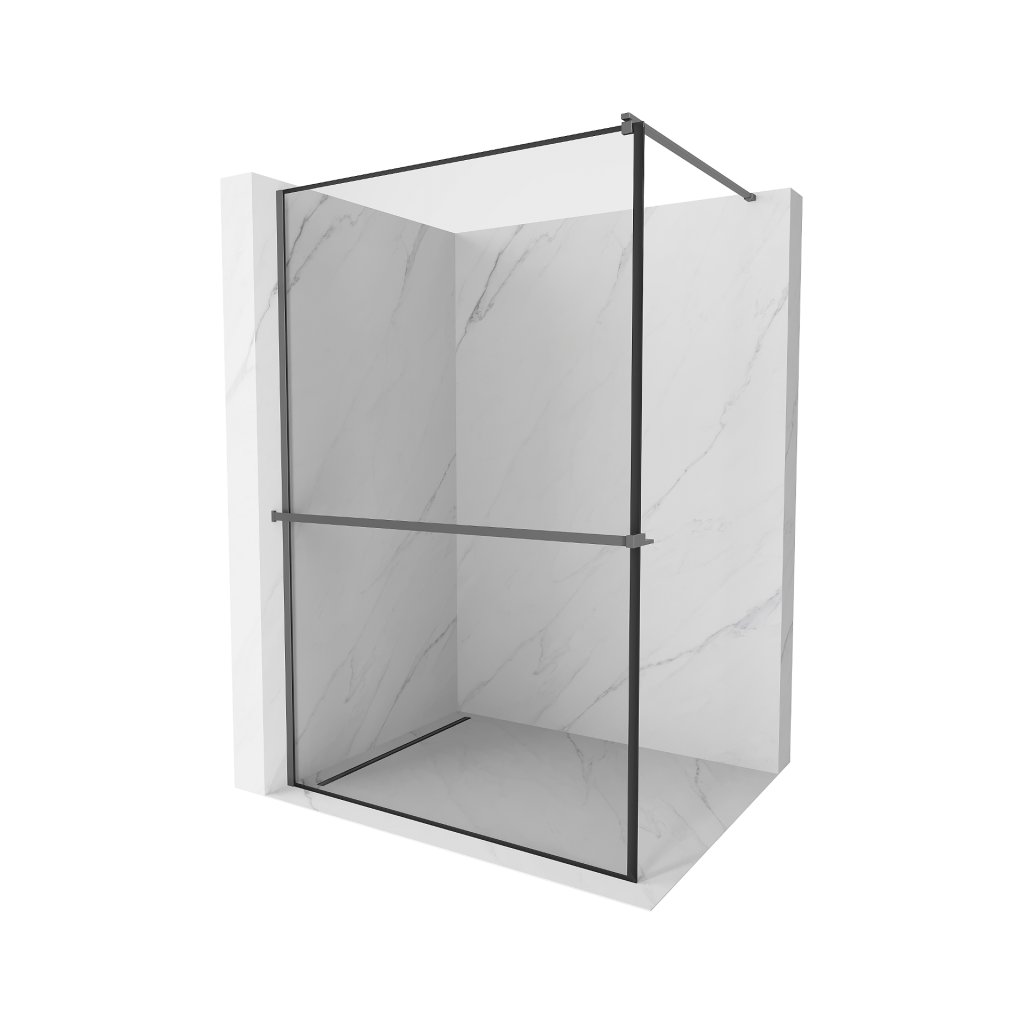 Mexen Kioto+, Paravan de duș walk-In cu poliță și cuier 120 x 200 cm, sticlă transparentă de 8 mm model negru, profil grafit, 800-120-121-95-70
