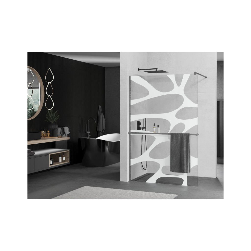 Mexen Kioto+, Paravan de duș Walk-In cu poliță și cuier 70 x 200 cm, sticlă transparentă model alb de 8 mm, profil grafit, 800-070-121-66-97
