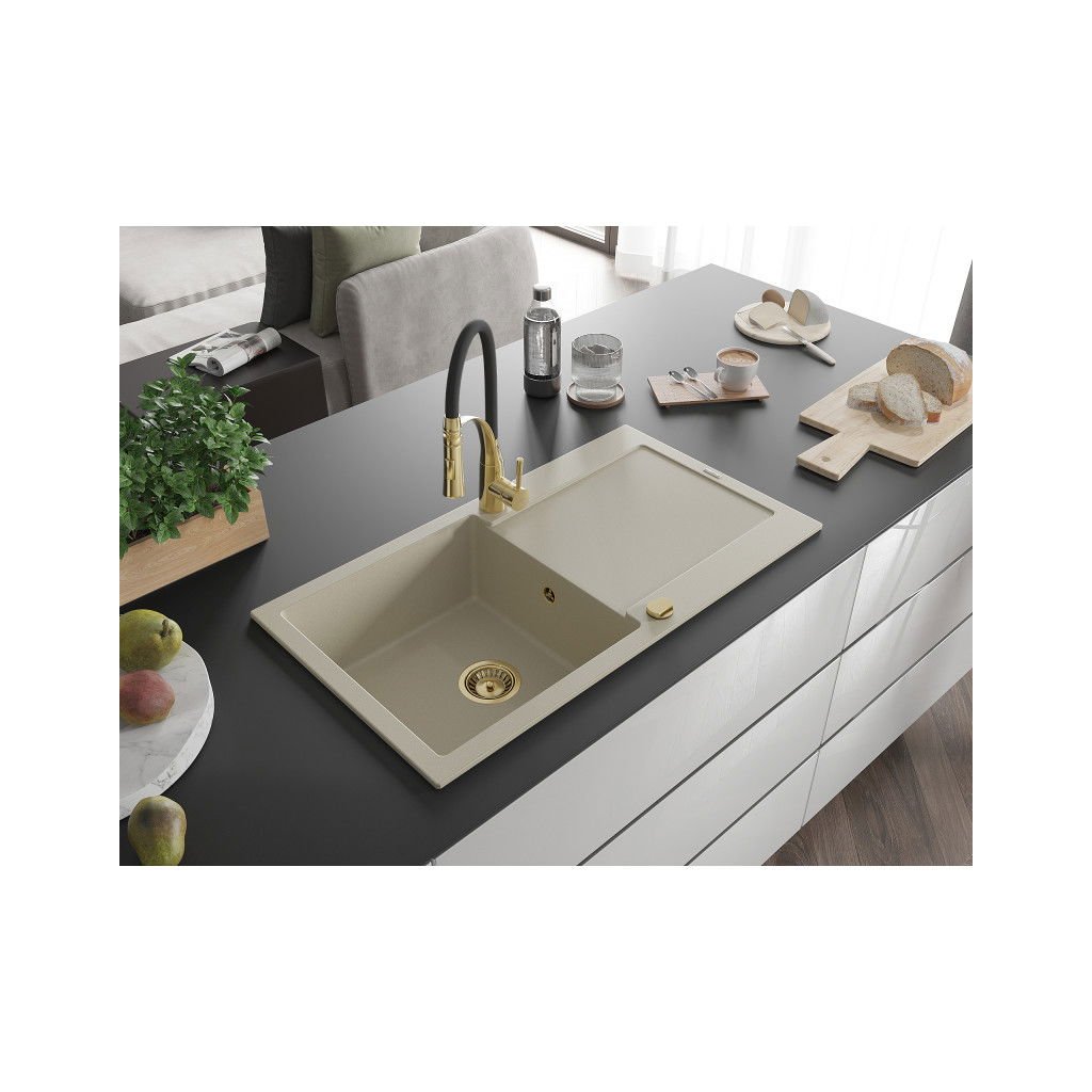 Mexen Leo, chiuveta granit 900x500x190 mm, baterie chiuveta cu 1 camera si Aster, bej, 6501-69-73450-57-G