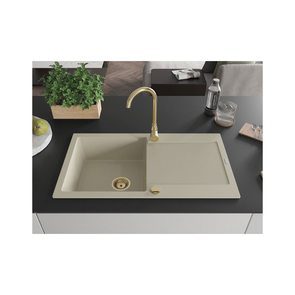 Mexen Leo, chiuveta granit 900x500x190 mm, robinet Telma 1 camera si auriu, bej, 6501-69-670200-50