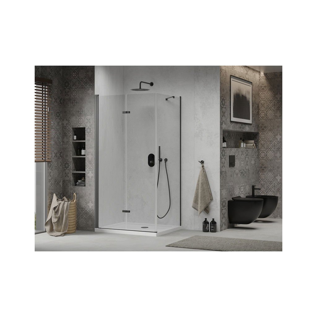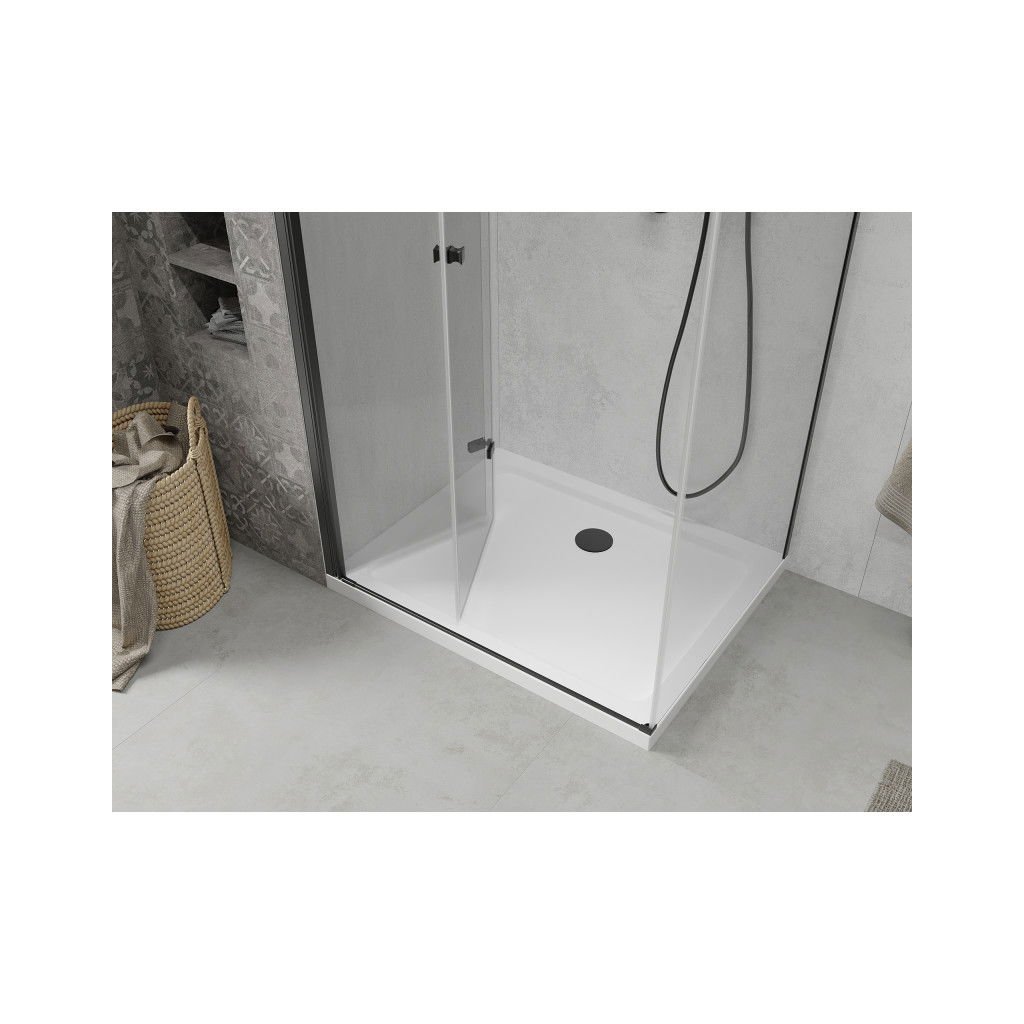Mexen Lima, cabina de dus cu usa rabatabila 70 (usa) x 100 (perete) cm, sticla transparenta 6mm, profil negru + cadita de dus subtire alba cu sifon negru, 856-070-100-70-00-4010B
