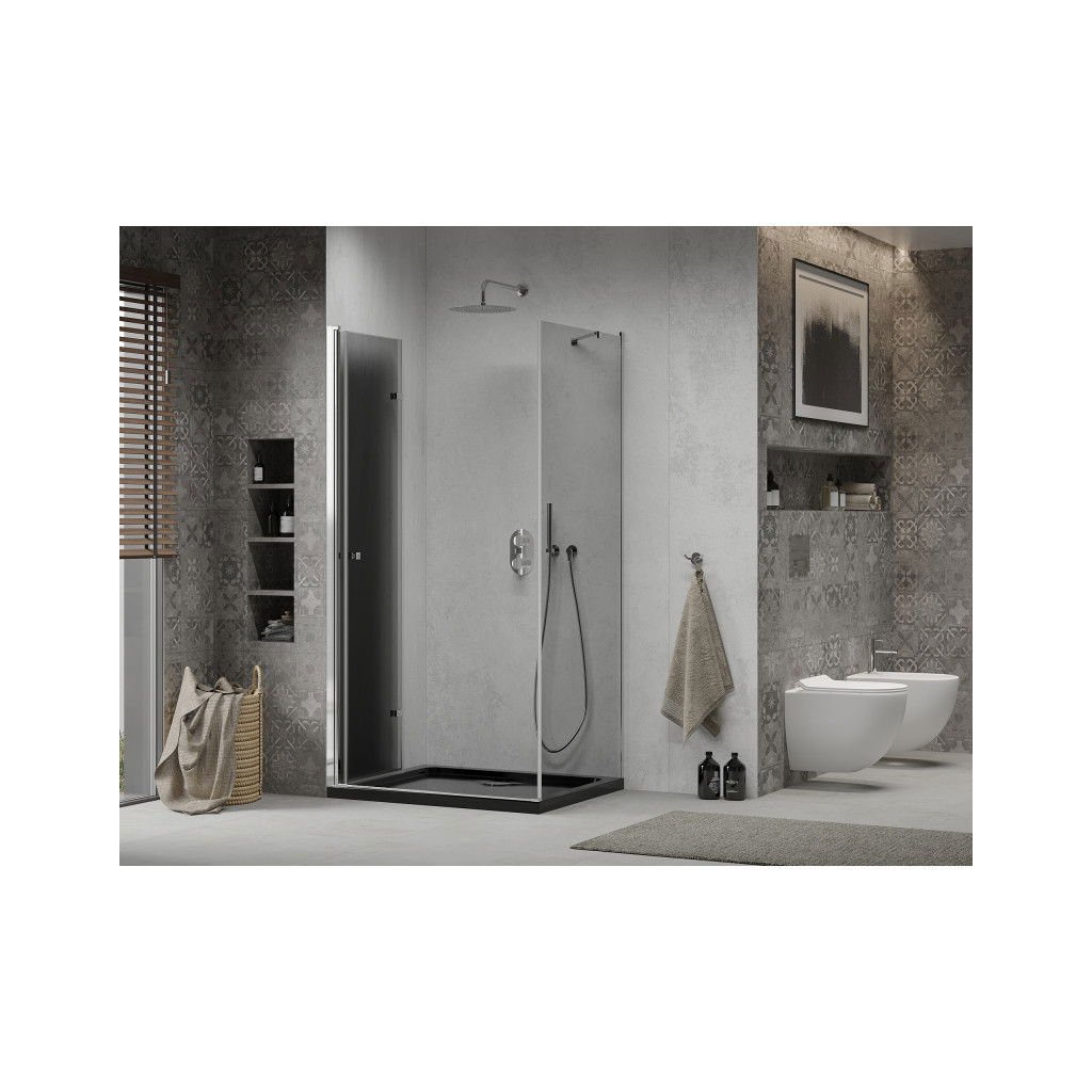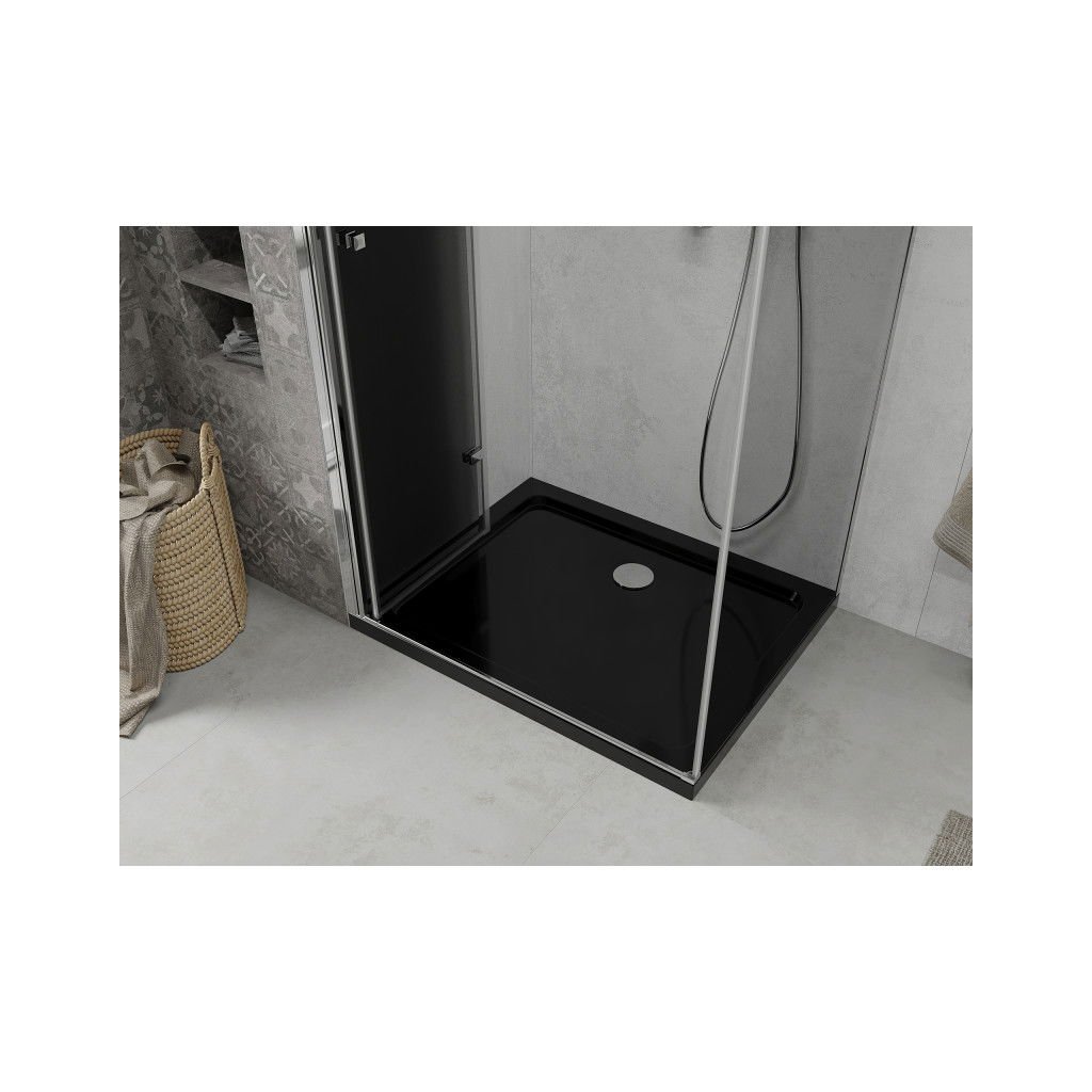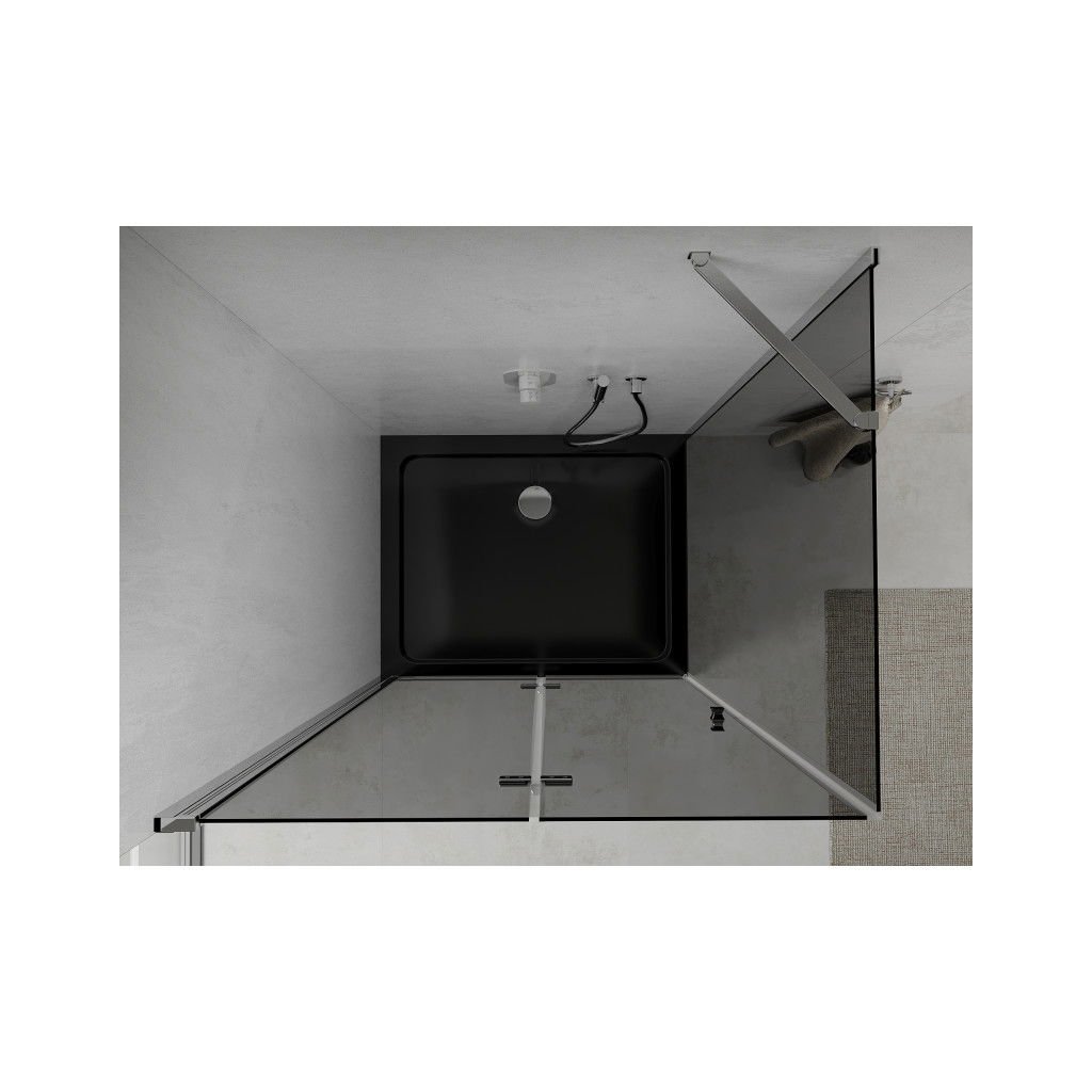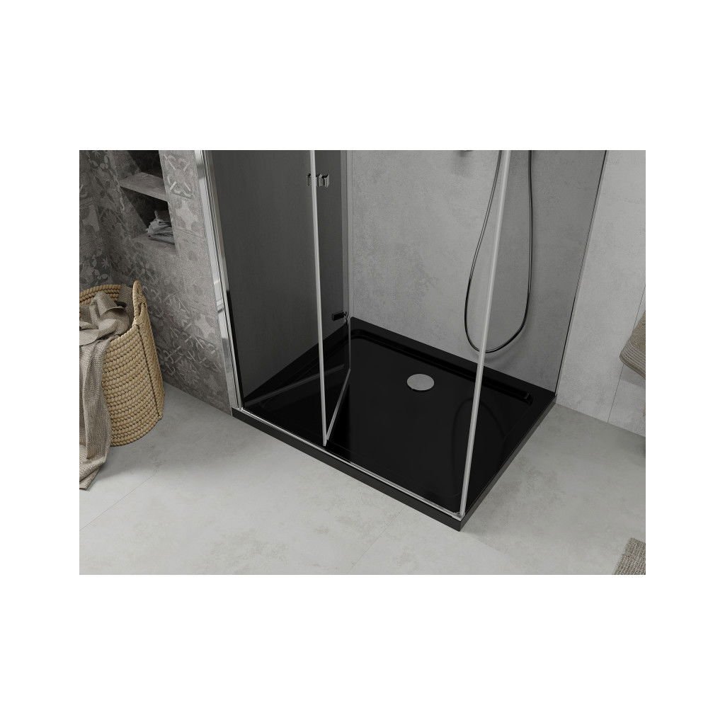 Mexen Lima, cabină de duș cu ușă rabatabilă 80 (uşă) x 120 (perete) cm, sticlă gri 6mm, profil crom + cadă de duș neagră subțire + sifon crom, 856-080-120-01-40-4070
