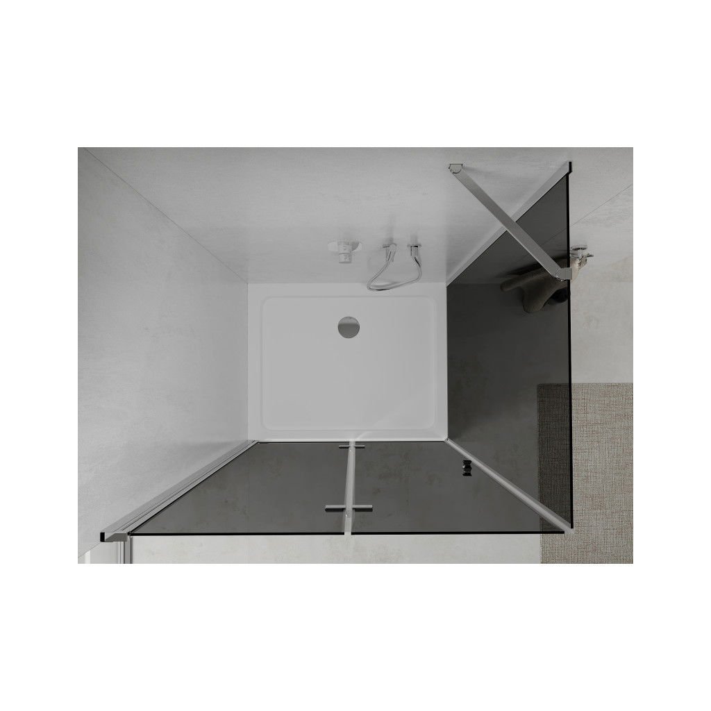 Mexen Lima, cabină de duș cu ușă rabatabilă 80 (uşă) x 90 (perete) cm, sticlă gri 6mm, profil crom + cadă de duș albă subțire + sifon crom, 856-080-090-01-40-4010
