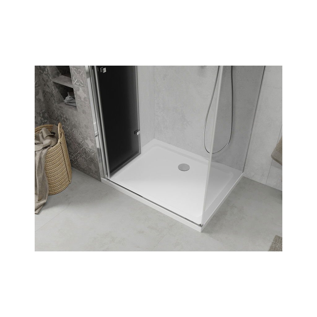 Mexen Lima, cabină de duș cu ușă rabatabilă 90 (uşă) x 100 (perete) cm, sticlă gri 6 mm, profil crom + cadă de duș albă subțire + sifon crom, 856-090-100-01-40-4010
