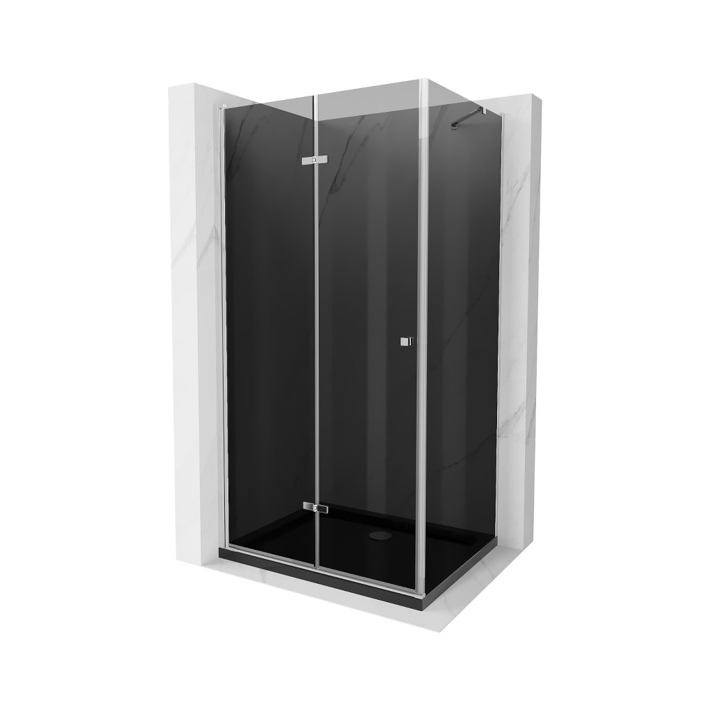 Mexen Lima, cabină de duș cu ușă rabatabilă 90 (uşă) x 120 (perete) cm, sticlă gri 6 mm, profil crom + cadă de duș neagră subțire + sifon crom, 856-090-120-01-40-4070