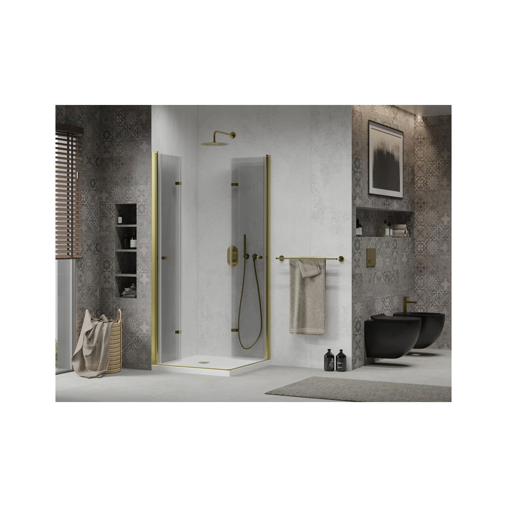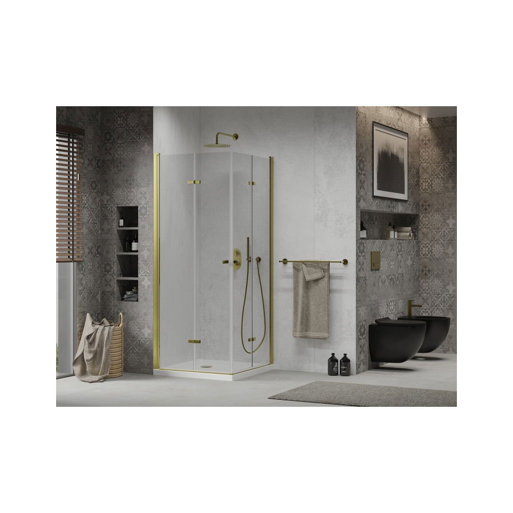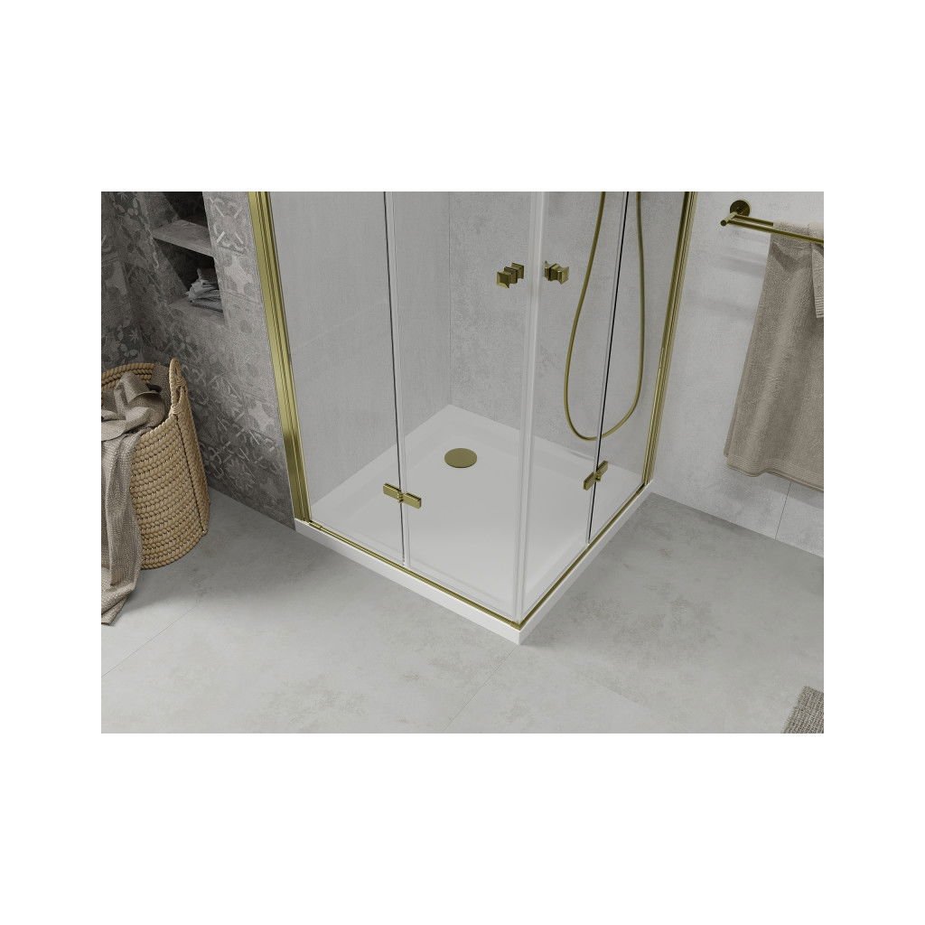 Mexen Lima Duo, cabină de duș 100 (uşă) x 100 (uşă) cm, sticlă transparentă 6mm, profil auriu + cadă de duș SLIM 5cm, 856-100-100-50-02-4010G