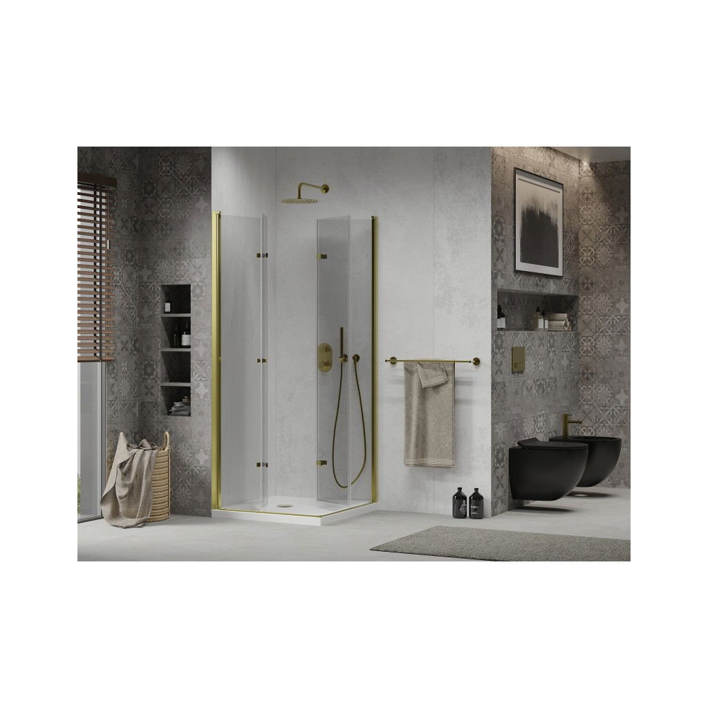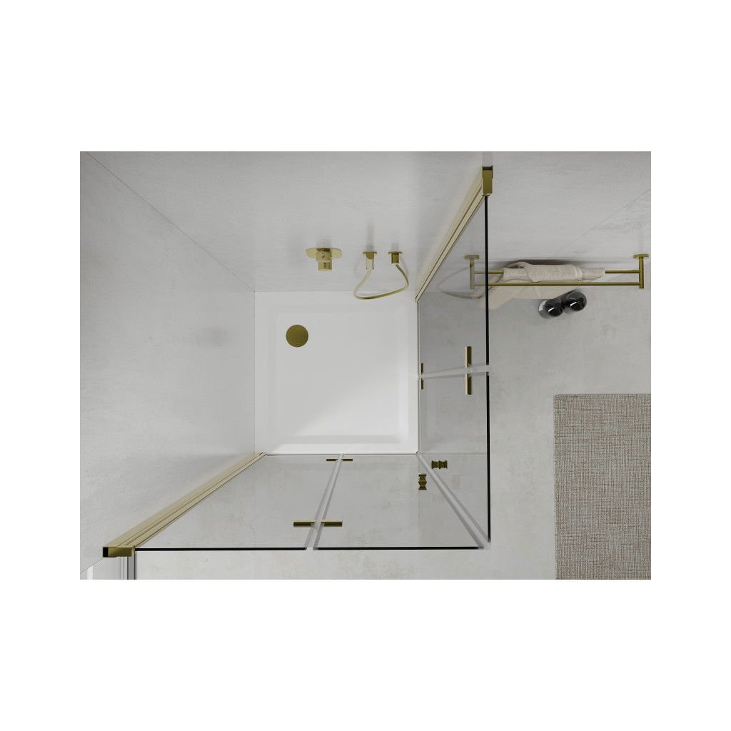 Mexen Lima Duo, cabină de duș 80 (uşă) x 80 (uşă) cm, sticlă transparentă 6 mm, profil auriu + cadă de duș, 856-080-080-50-02-4010G