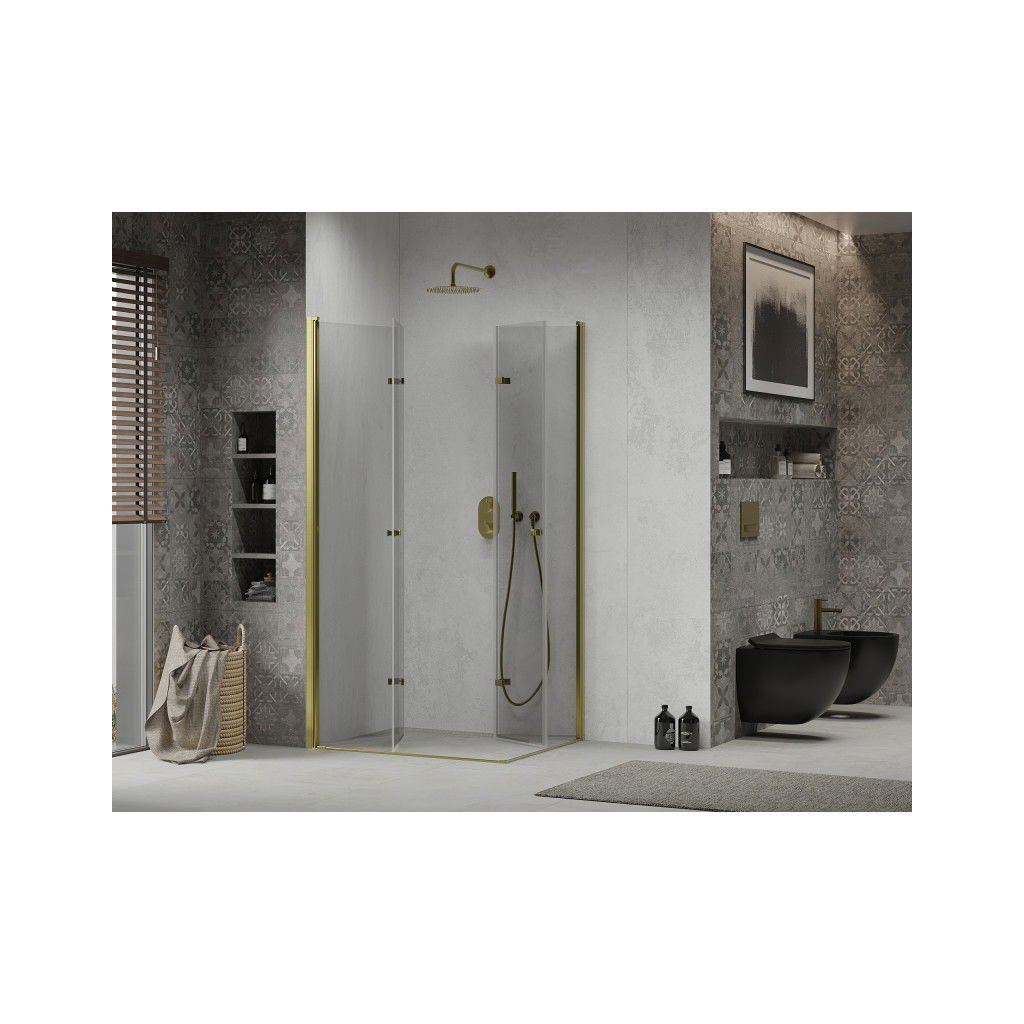 Mexen Lima Duo, cabină de duș 90 (uşă) x 80 (uşă) cm, sticlă transparentă 6 mm, profil auriu, 856-090-080-50-00-02