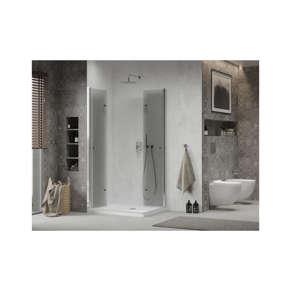 Mexen Lima Duo, cabină de duș cu ușă rabatabilă 80 (uşă) x 70 (uşă) cm, sticlă transparentă 6 mm, profil crom + cadă de duș albă subțire + sifon crom, 856-080-070-01-02-4010