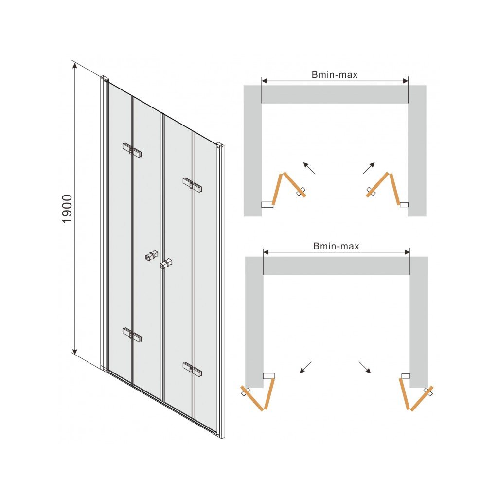 Mexen Lima Duo, usa de dus plianta pentru deschidere 190 cm, sticla transparenta 6 mm, profil cromat, LIMA DUO DOOR 190