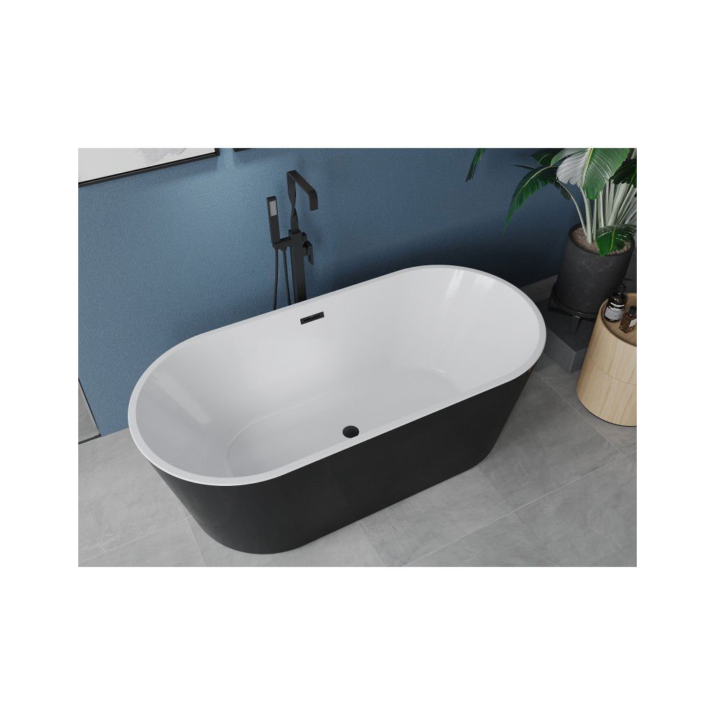 Mexen Luna, cadă de sine stătătoare 150 x 75 cm, alb-negru, preaplin negru mat, 52031507575-70
