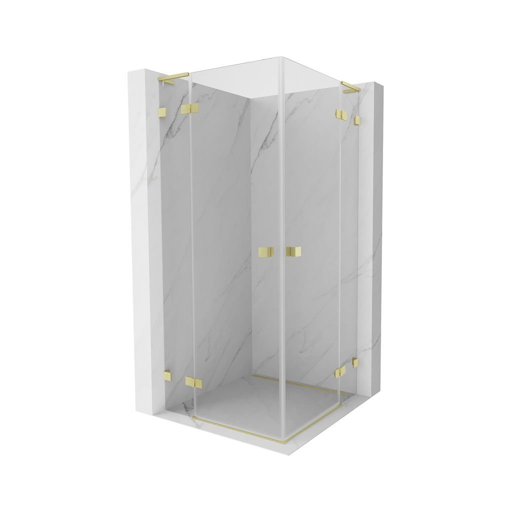 Mexen Lunar, cabină de duș cu balamale L Duo 120 x 120 cm, sticlă transparentă de 8 mm, profil auriu mat, 834L-120L-120P-55-00