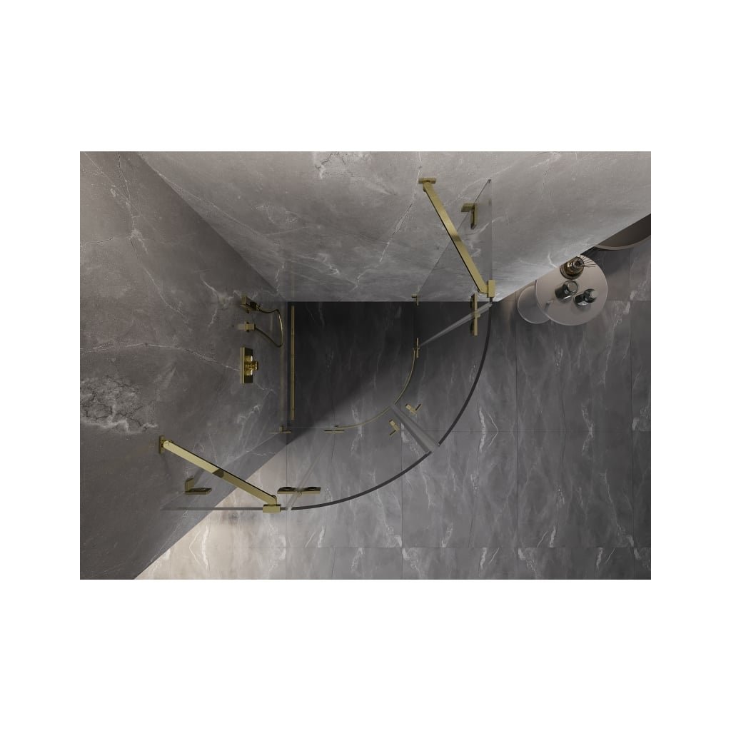Mexen Lunar, cabină de duș semicirculară cu balamale 90 x 90 cm, sticlă transparentă de 8 mm, profil auriu, 833-090L-090P-50-00