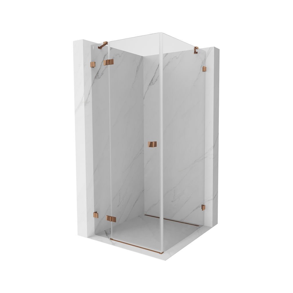 Mexen Lunar, colț de duș cu balamale stânga 90 x 90 cm, sticlă transparentă de 8 mm, profil auriu roz, 834-090-090-60-00-L