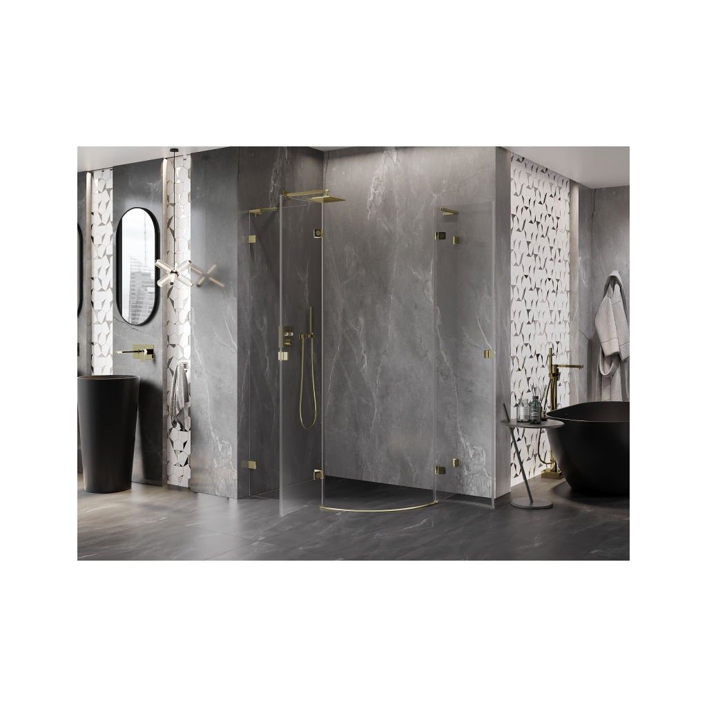 Mexen Lunar, colț de duș semicircular L basculant spre stânga 100 x 70 cm, sticlă transparentă de 8 mm, profil auriu, 833L-100L-070P-50-00