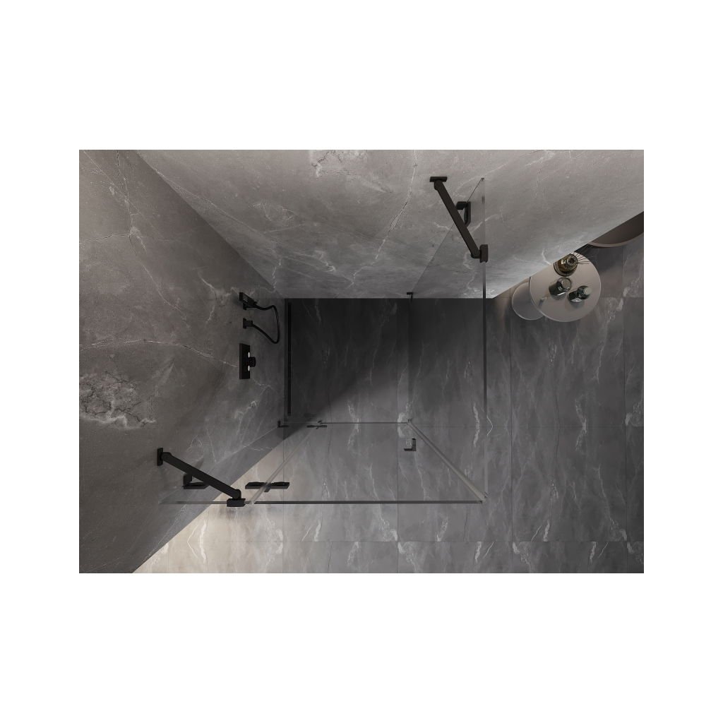 Mexen Lunar, colț duș cu balamale stânga 70 x 70 cm, sticlă transparentă de 8 mm, profil negru, 834-070-070-70-00-L