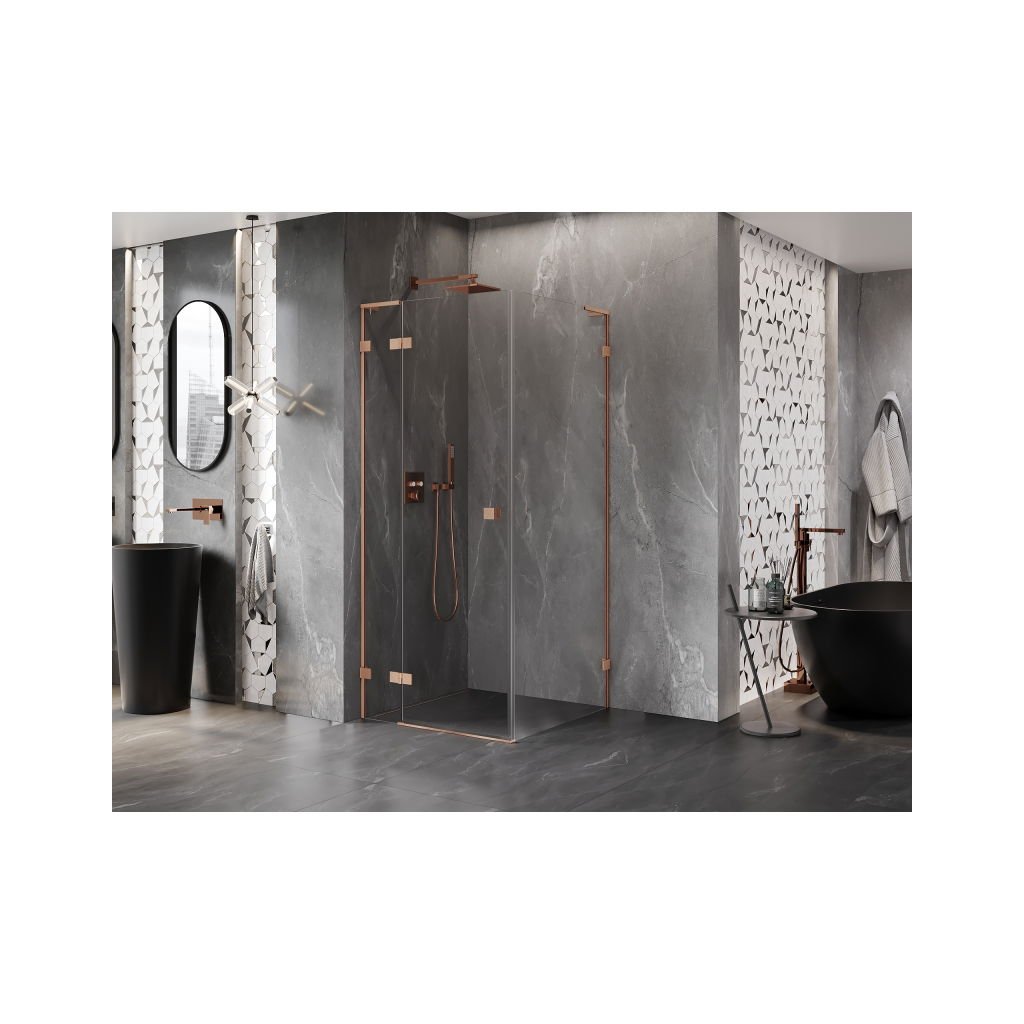 Mexen Lunar, colț duș rabatabil L stânga 100 x 100 cm, sticlă transparentă 8 mm, profil cupru mat, 834L-100-100-65-00-L