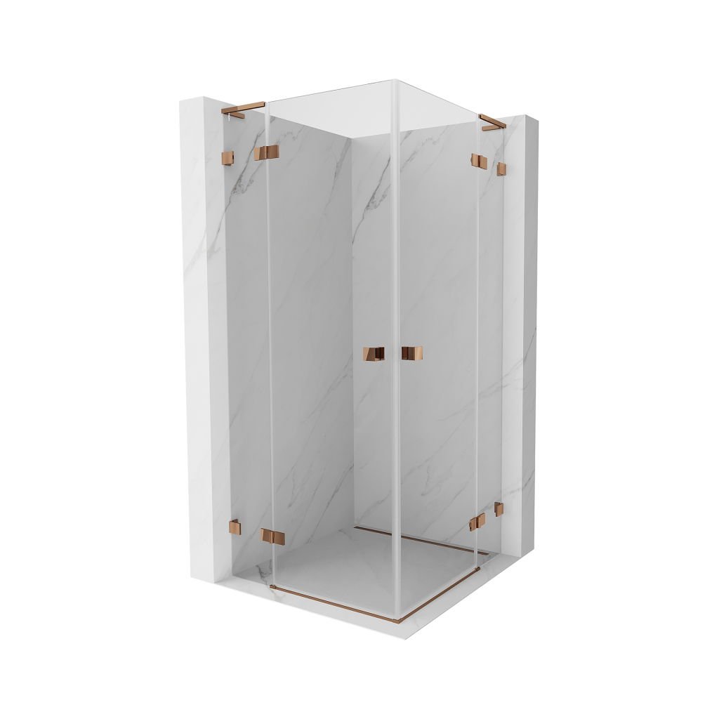 Mexen Lunar, duș cu balamale L Duo 85 x 85 cm, sticlă transparentă de 8 mm, profil auriu roz, 834L-085L-085P-60-00
