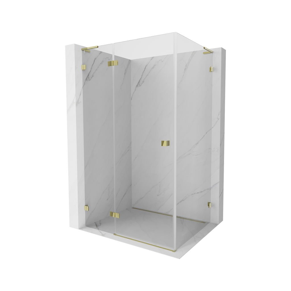 Mexen Lunar, duș pliabil L, stânga 80 x 70 cm, sticlă transparentă de 8 mm, profil auriu, 834L-080-070-50-00-L
