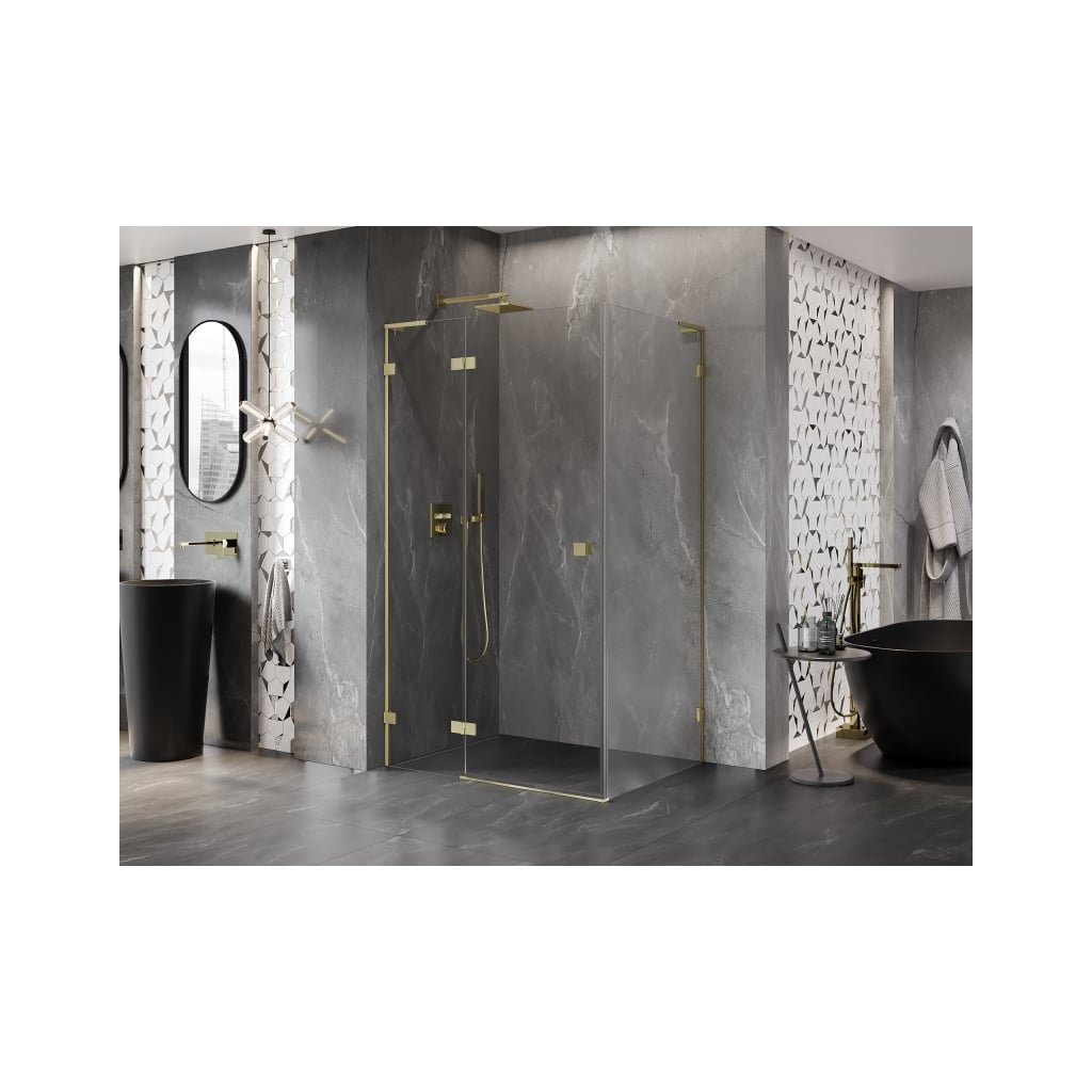 Mexen Lunar, duș pliabil L, stânga 90 x 80 cm, sticlă transparentă de 8 mm, auriu periat - 834L-090-080-55-00-L