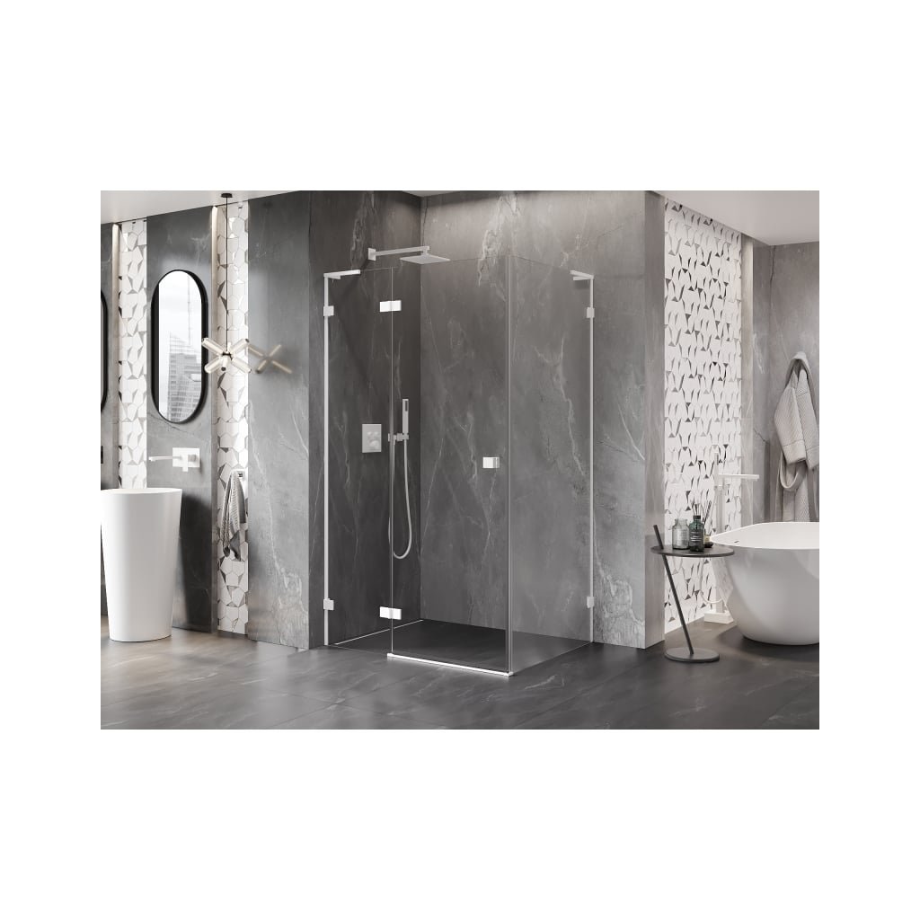 Mexen Lunar, duș rabatabil L, stânga 80 x 70 cm, sticlă transparentă de 8 mm, profil alb, 834L-080-070-20-00-L