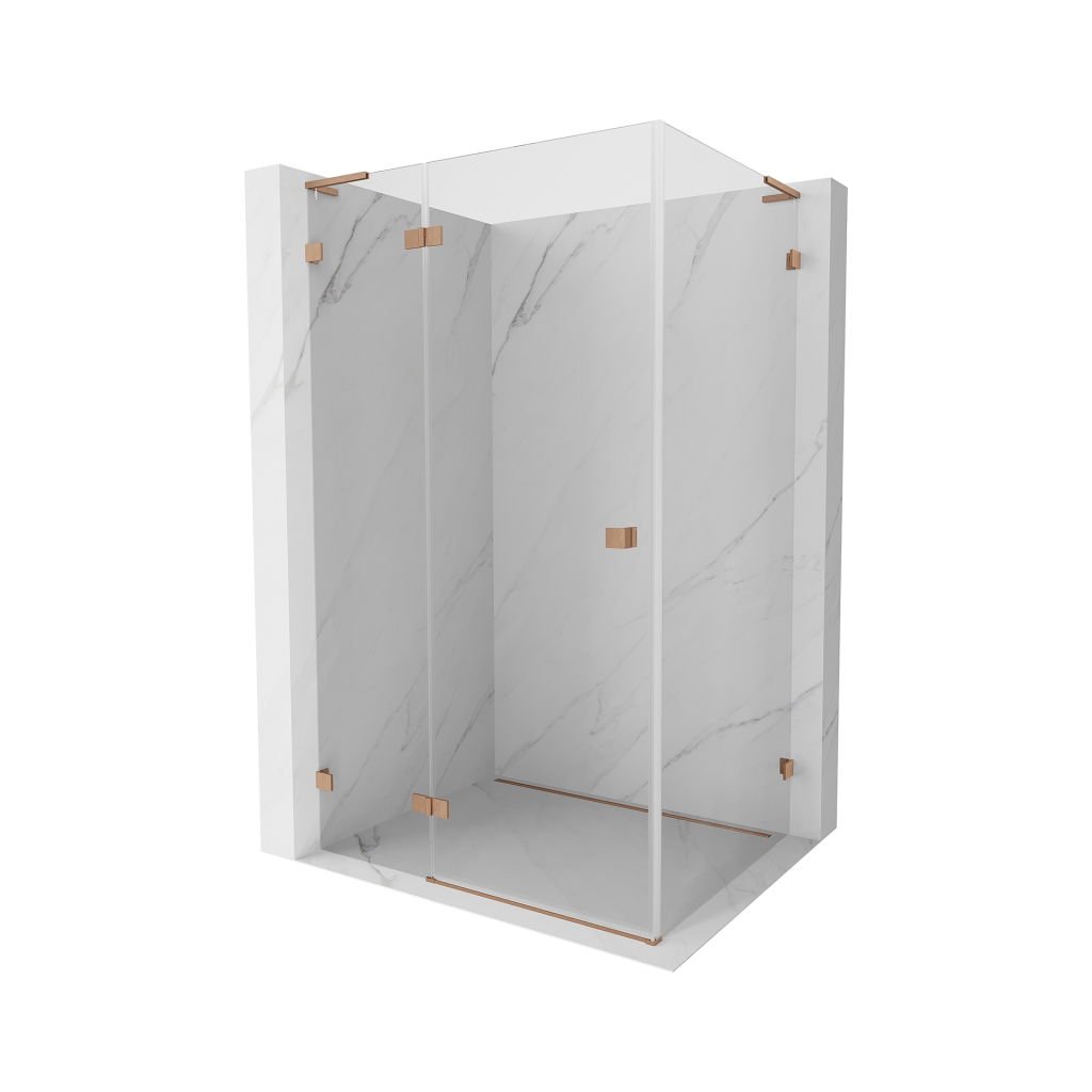 Mexen Lunar, duș rabatabil L, stânga 85 x 70 cm, sticlă transparentă de 8 mm, profil cupru mat, 834L-085-070-65-00-L