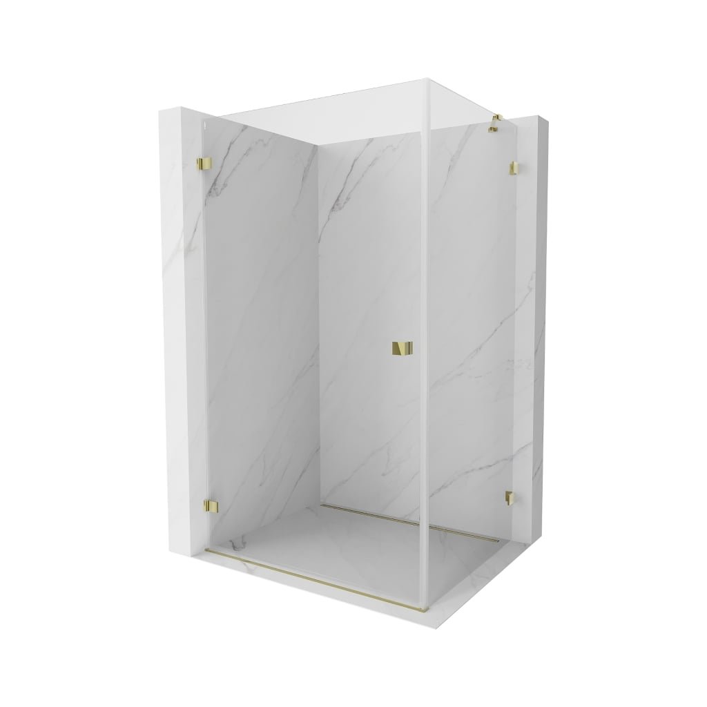 Mexen Lunar-B, duș rabatabil, stânga 95 x 90 cm, sticlă transparentă de 8 mm, profil auriu, 832-095-090-50-00-L