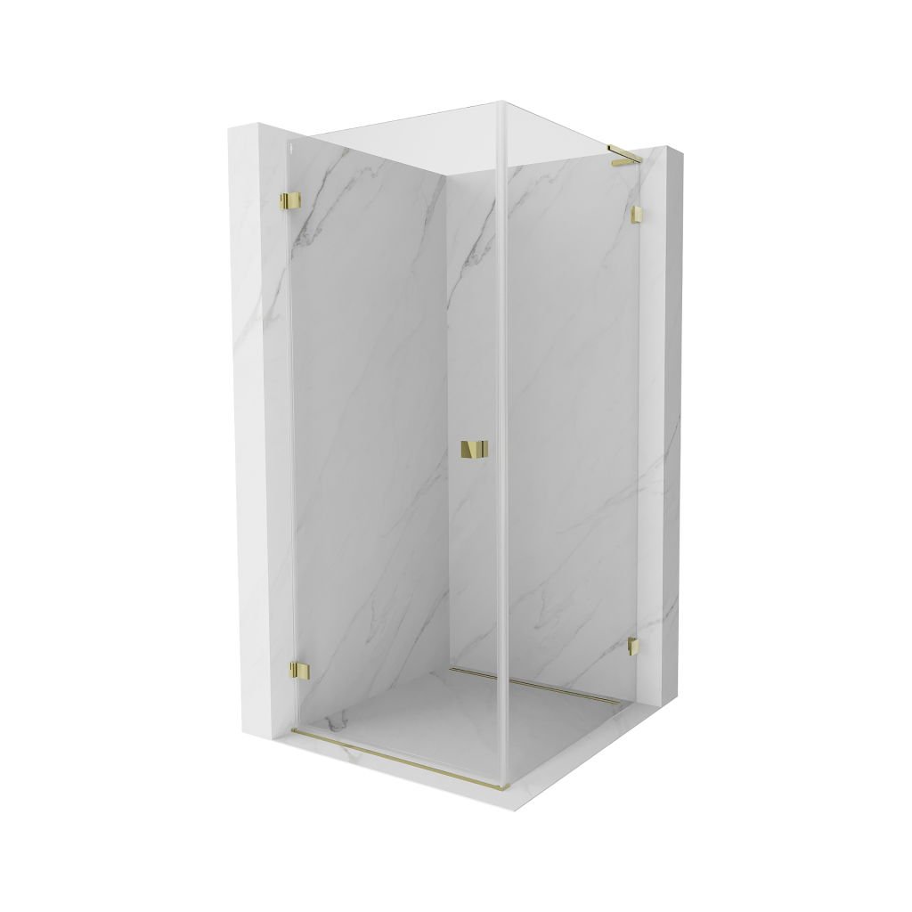 Mexen Lunar-B L, colț de duș rabatabil stânga 70 x 70 cm, sticlă transparentă de 8 mm, profil auriu, 832L-070-070-50-00-L