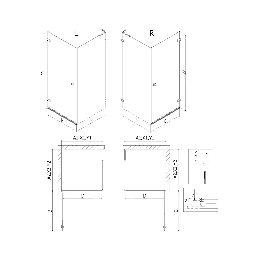 Mexen Lunar-B L, colț duș rabatabil stânga 85 x 70 cm, sticlă transparentă de 8 mm, profil cromat, 832L-085-070-01-00-L