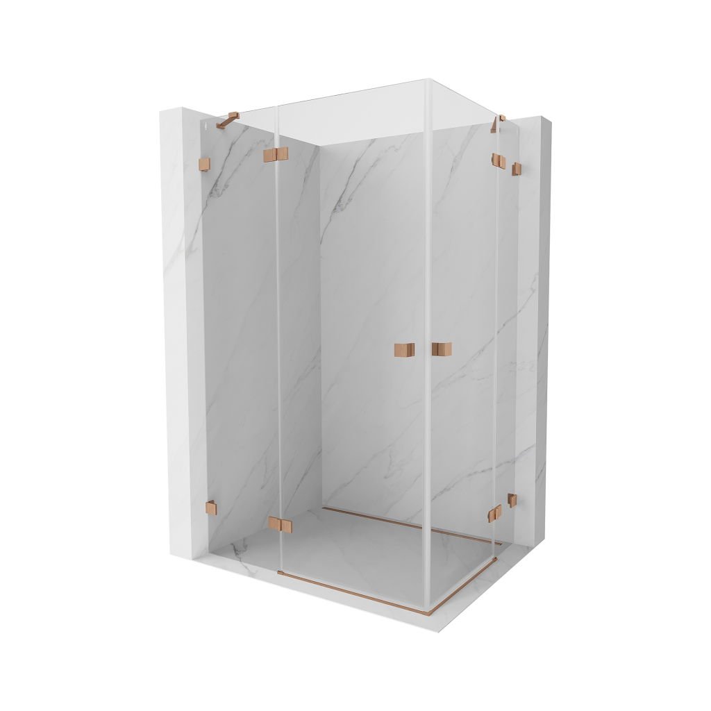 Mexen Lunar Duo, cabină de duș cu balamale 80 x 70 cm, sticlă transparentă de 8 mm, profil cupru mat, 834-080L-070P-65-00
