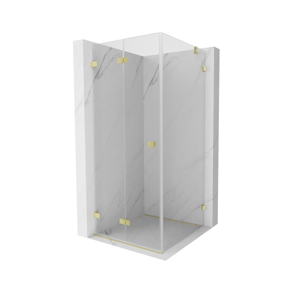 Mexen Lunar-F, cabină de duș pliabilă stânga 100 x 100 cm, sticlă transparentă de 8 mm, auriu periat - 836-100-100-55-00-L
