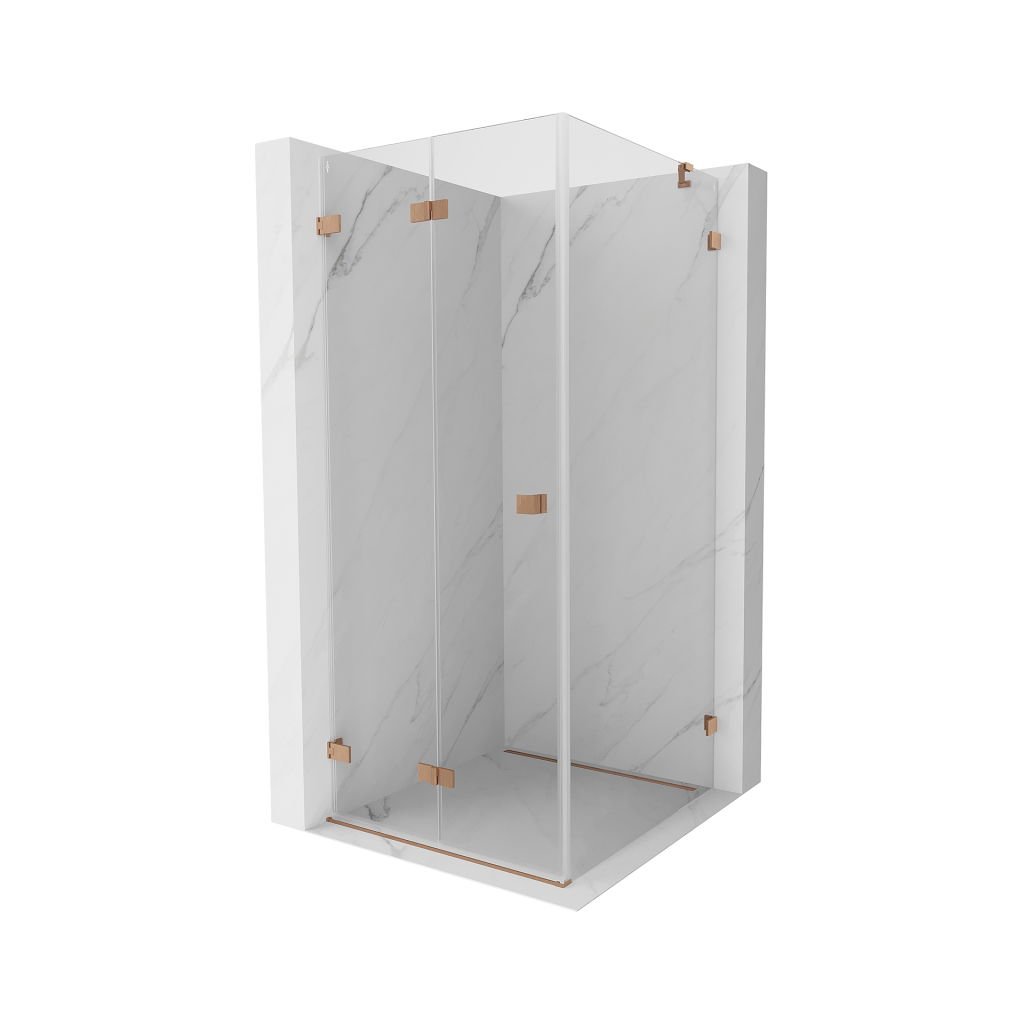 Mexen Lunar-F, cabină de duș pliabilă stânga 70 x 70 cm, sticlă transparentă de 8 mm, profil cupru mat, 836-070-070-65-00-L