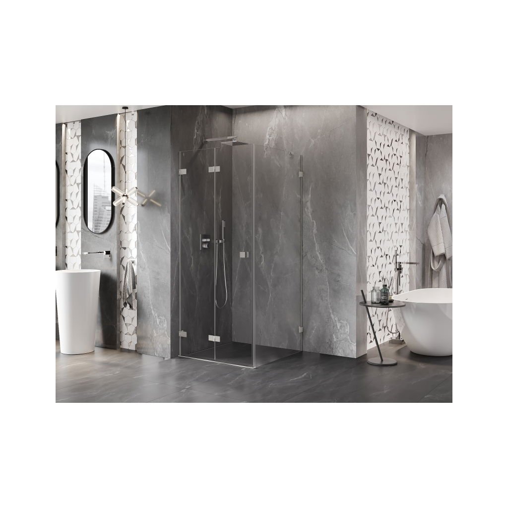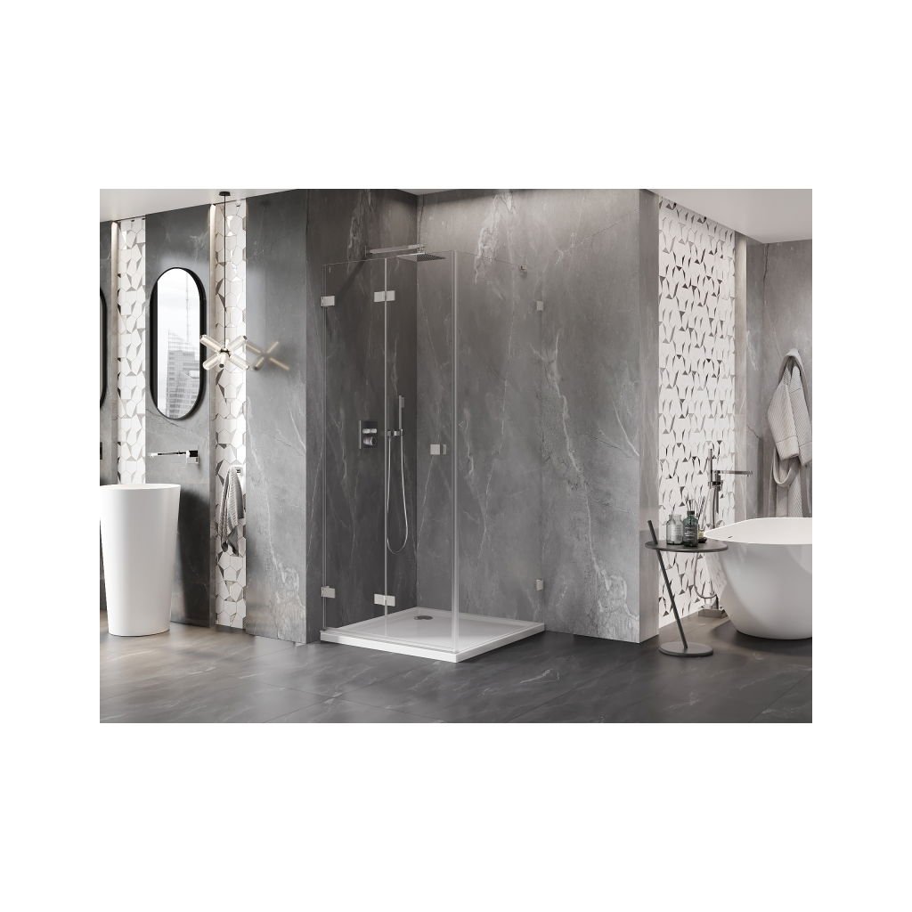 Mexen Lunar-F, colț de duș rabatabil stânga 70 x 70 cm, sticlă transparentă de 8 mm, profil din oțel, 836-070-070-97-00-L