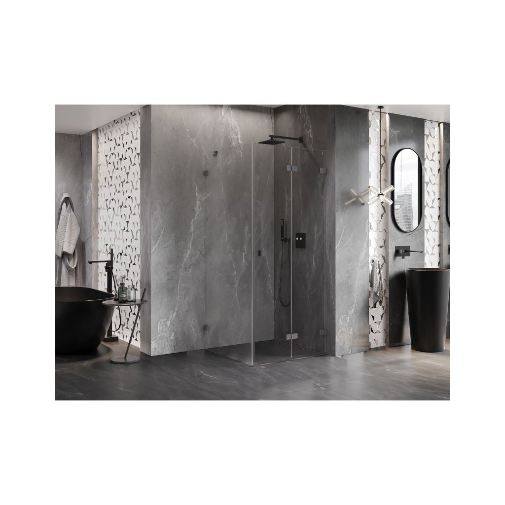 Mexen Lunar-F, duș rabatabil dreapta 80 x 80 cm, sticlă transparentă de 8 mm, profil grafit periat, 836-080-080-66-00-P