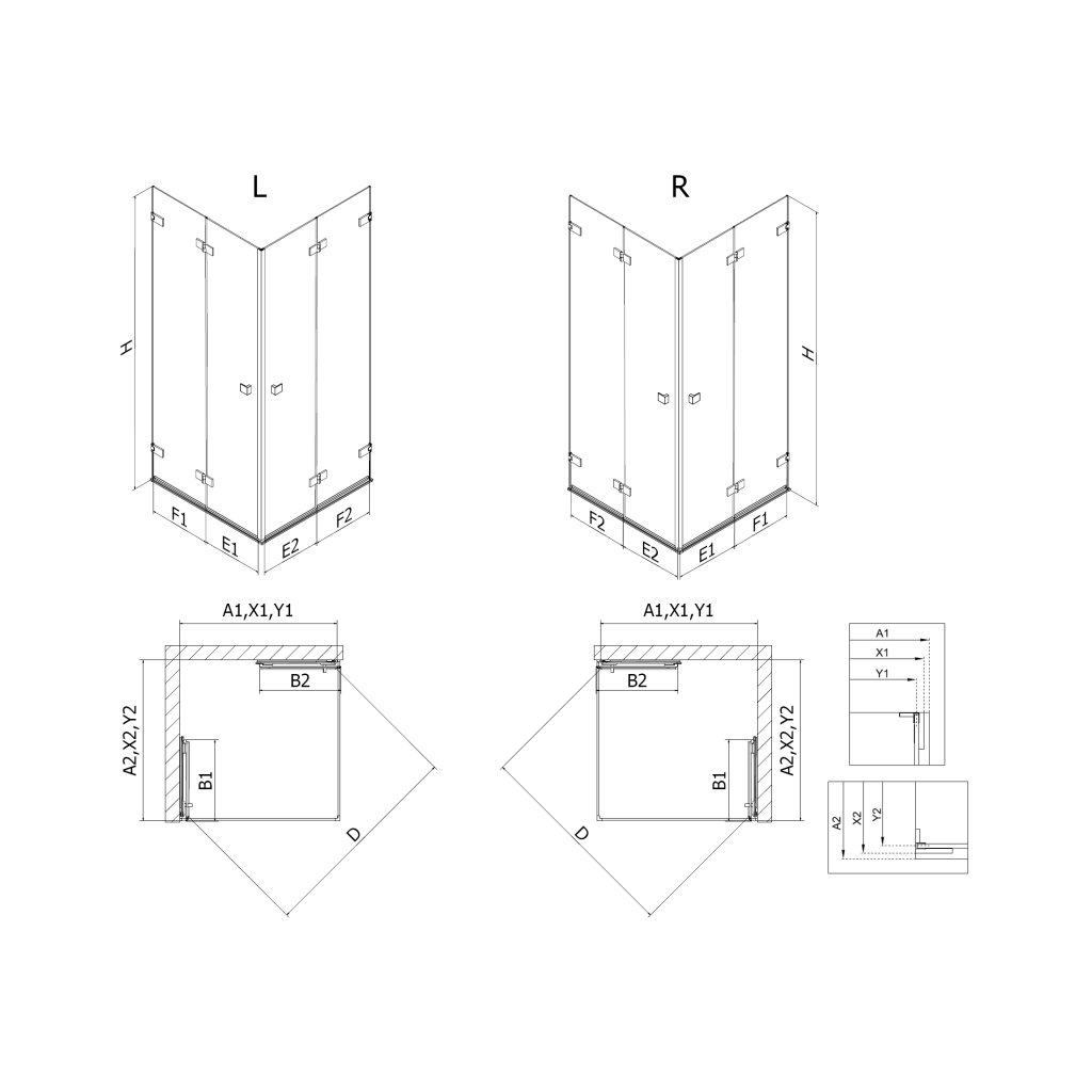 Mexen Lunar-F Duo, duș rabatabil 100 x 100 cm, sticlă transparentă de 8 mm, profil alb, 836-100L-100P-20-00