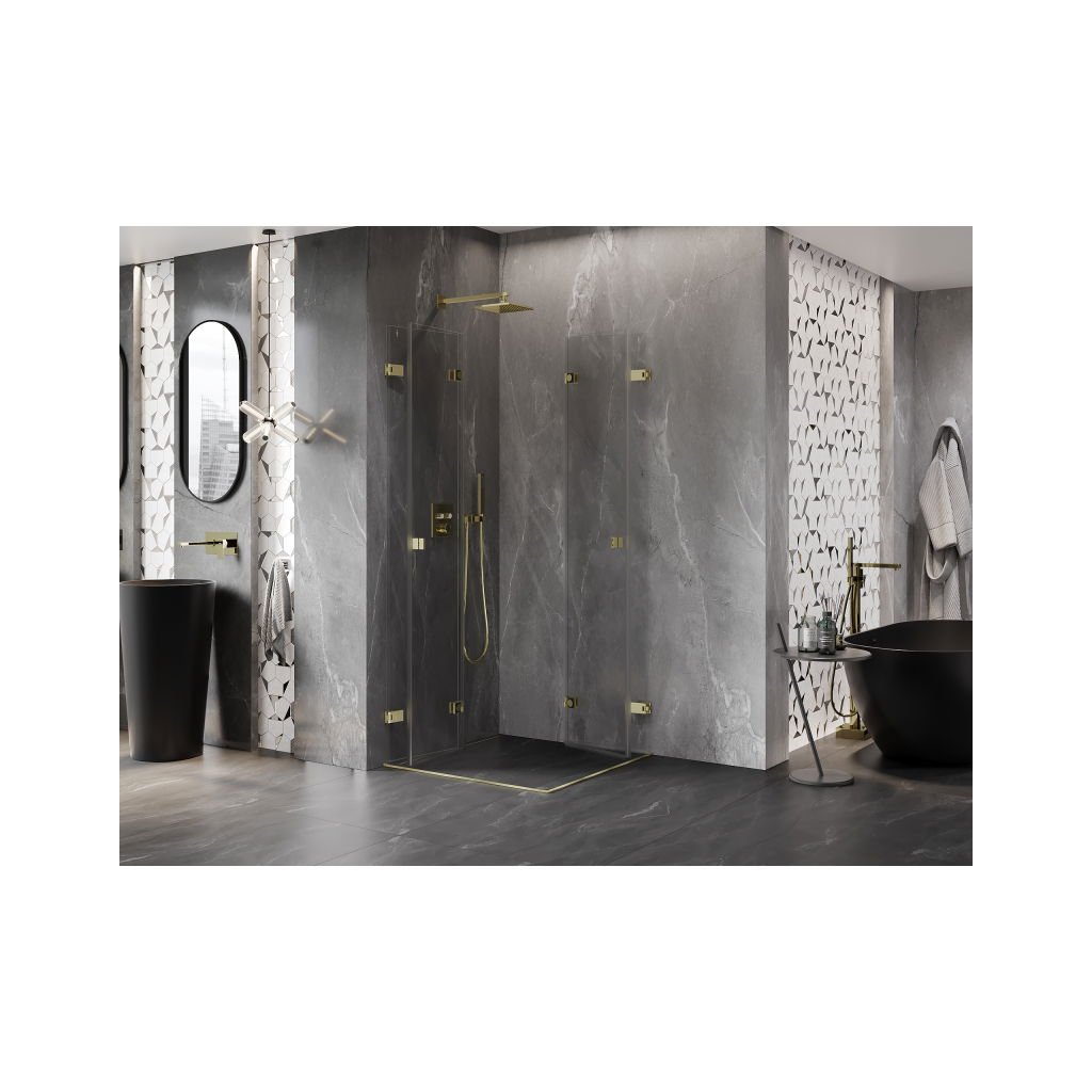 Mexen Lunar-F Duo, duș rabatabil 80 x 80 cm, sticlă transparentă de 8 mm, profil auriu mat, 836-080L-080P-55-00