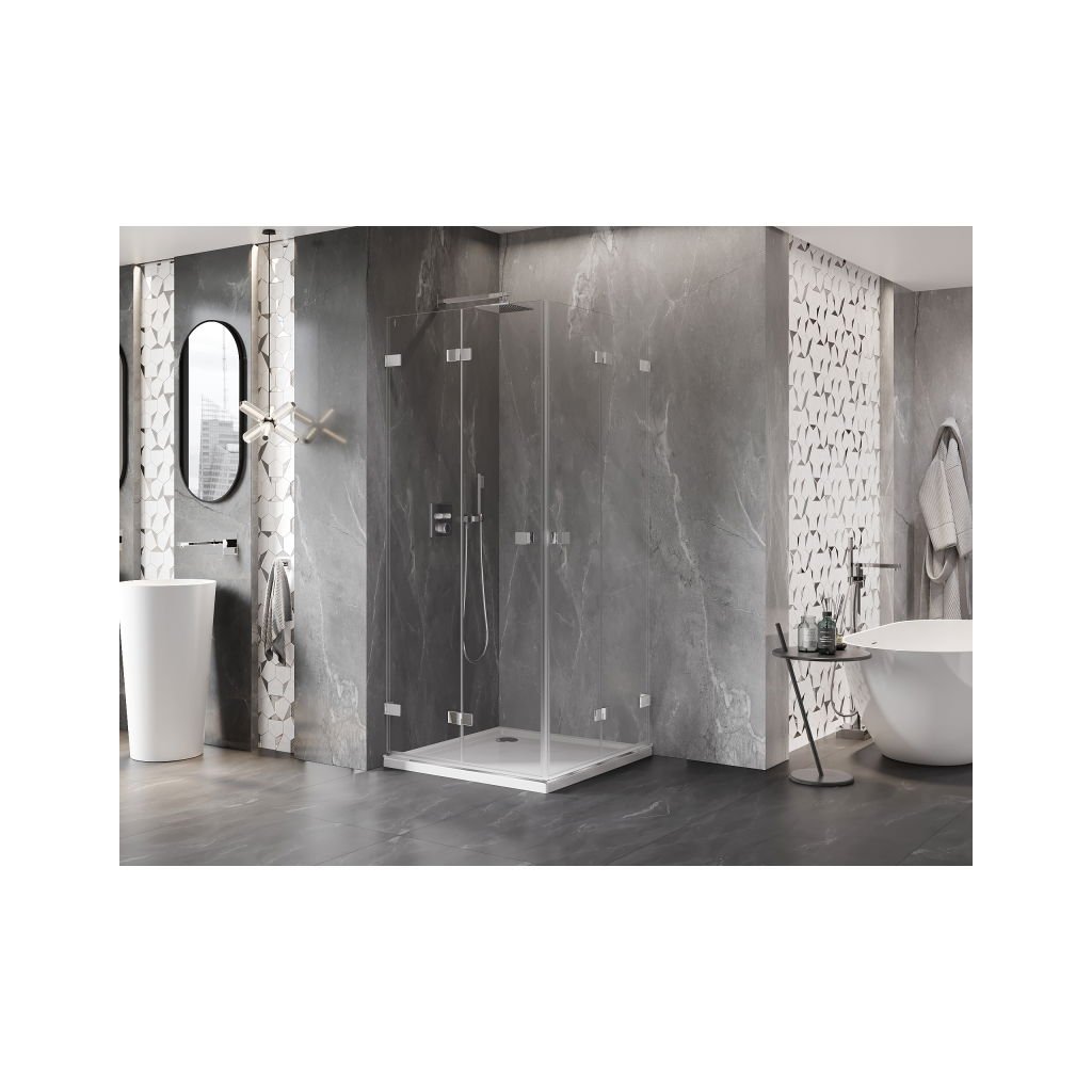 Mexen Lunar-F Duo, duș rabatabil 80 x 80 cm, sticlă transparentă de 8 mm, profil cromat, 836-080L-080P-01-00